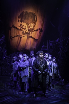 Signature, and director Eric Schaeffer, have a longtime connection with authors John Dempsey (book and lyrics) and Dana P. Rowe (music), whose earlier works include The Fix and The Witches of Eastwick. Here they cut loose in all directions, with songs evoking swaggering chanteys, the depths of the sea, African folk melodies, even a nod to Richard Wagner's Ring Cycle. Paul Tate DePoo III has created another one-of-a-kind scenic design in the MAX Theatre; audiences can enter through only one of the two lobby doors because a tall and minutely detailed wall blocks one of the aisles. The center of the stage floor is wooden and incorporates a turntable; ropes hang from above and characters navigate the levels of the set by ladder and stairs, surrounded by the audience in asymmetrical seating areas. Bursts of smoke from vents in the floor periodically punctuate the action, adding to the haze that filters Chris Lee's lighting design of blues and greens. While history and legend tell of an actual pirate known as Blackbeard (or Edward Teach, as he thinks of himself here), Dempsey and Rowe take the character into a realm of ancient magic. This Blackbeard (Chris Hoch) is not well known and feels inferior to the father he never met, the famed Whitebeard, so when he learns that British troops are pursuing him, he and his crew set out to create a story that will precede him. Blackbeard has a wifebeautiful La Mer (Maria Egler), a personification of the seaand a former loverimposing Dominique (Jessica Bennett, in for Nova Y. Payton), who has great power even though she is trapped in a coral reef. When he seeks her help, Dominique sends him on a quest that leads to mystical adventures in Norway, Japan, and India. Hoch is suitably commanding, with a ringing voice, but Kevin McAllister dominates his scenes as Blackbeard's lieutenant Caesar, an African who escaped the slave traders. While the song "To Be a Pirate" is a bit on the nose as Caesar bluntly equates the pirate's life with freedom, most of the score is strong. Matthew Gardiner's swirling choreography amplifies the fable quality of the production, with surprising and ingenious touches throughout. Similarly, Erik Teague's costumes range from the practical to the fantastic (Dominique must be carried by other cast members) and funny (the bedraggled Norse gods in the ruins of Valhalla).