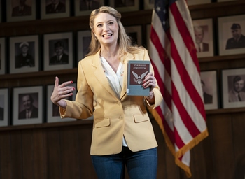 Director Oliver Butler gives the work a deceptively naturalistic appearance, starting as Schreck describes her experience at age 15 giving speeches about the U.S. Constitution in American Legion competitions. In fact, she notes, she earned enough in prize money to pay for college. Initially, Schreck steps back in time (in her yellow blazer and tailored jeans, designed by Michael Krass) to her teenage self, sharing her impressions of the Constitution and giving a detailed exegesis of the first part of the 14th Amendment, as a Legion official (Mike Iveson, whose facial expressions are hilarious) attempts to maintain order. The sneaky part comes when Schreck moves into the present and tells how the Constitution's guarantees of due process and equal protection under the law didn't always work for the women in her family. Probably Schreck's most trenchant observation is that the U.S. Constitution is a document of negative rightsprotecting the people from overreach by the governmentrather than positive rightswhich obligate the government to provide specific kinds of support to the public. As she shows, the protections of the 14th Amendment have not prevented legalized discrimination against ethnic and racial groups, women, LGBT populations, and disadvantaged communities. There's nothing dry about her performance. She demonstrates her family's tendency of "Greek tragedy crying" in bad situations and grounds many of her arguments in pop culture. And that's not all. The final part of the play sets up a debate between Schreck and Rosdely Ciprian, a high school sophomore who has just turned 15. The issue: Can the Constitution be made more accountable to the American public or should it be abolished and a new one enacted? The arguments, and the resolution, vary with each performance. The 110-minute play provides a stimulating civics lesson with a lot of laughs along the way. Kennedy Center |
