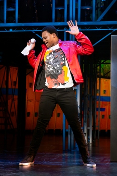 Bobbie and Dean Pitchford co-wrote the book for the 1998 musical, based on Pitchford's screenplay for the original 1984 movie starring Kevin Bacon, and Pitchford also wrote the lyrics to Tom Snow's music. Of course, the show also includes the famous pop hits from the movie, starting with the title song. The story is schematically simple. In a nonspecific recent past (David C. Woolard's costumes are all over the place), high school student Ren McCormick (J. Quinton Johnson) is growing up in Chicago, where he can let off steam with his friends at dance clubs. After Ren's father abandons the family, Ren and his mother Ethel (Judy Kuhn) move to the isolated town of Bomont to stay with relatives. As Ren tries to find his place in this rural community, he learns that a civic leader, the Reverend Shaw Moore (Michael Park), is behind a town ordinance that outlaws dancing in town. Why? He blames dancing (and drinking, pot smoking, and filthy rock lyrics) for the deaths of four Bomont teens in a car crash after a dance some years earlier. Ren finds an ally in Moore's rebellious daughter Ariel (Isabelle McCalla), which makes him a target of Ariel's sleazy boyfriend Chuck (Joshua Logan Alexander). Johnson is an electric talent, which helps move things along, but several fine actors are struggling with roles that don't give them much to do. Tony Award nominees Judy Kuhn and Rebecca Luker, as Ren's mother and Moore's wife respectively, spend most of their time dealing with difficult matters, feeling sad and aggrieved until the finale. Park is stolid in a role that could use more fireworks. Peter McPoland and Nicole Vanessa Ortiz shine in the supporting comic roles of Ren's gawky friend Willard and Ariel's sassy friend Rusty. Choreographer Spencer Liff also has Broadway credits, but his work here is serviceable rather than memorable. Several of the dance numbers look more like calisthenics routines than like people breaking loose. Paul Tate dePoo III's scenic design centers on metal scaffolding that holds the seven musicians, conducted from the keyboard by Sonny Paladino, rising above a changing configuration of abstract metal panels and cubes. He also created the projections, which range from the interior of a Chicago disco to a high school football field, a honky-tonk, and a diner with waiters on roller skates.