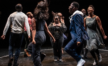 Harris has explained that she was driven to respond, artistically and viscerally, to the ongoing parade of African Americans dying from racialized attacks, including but not limited to those caused by law enforcement officials. As she pointed out in an interview, she wanted to emphasize that rage and frustration are legitimate responses to this situation. Lest that sound as if the performance indicts audience members who are not African American, that is far from the truth. Part of the point being made by Harris, by director Whitney White, and by the eight performers is that everyone has a role to play in this society and it's important for them all to understandand accept the legitimacy ofstories that differ from their own. The company originally performed this work in New York last year. As part of the residency in Washington, it was performed at ethnically diverse locations in the citythe Duke Ellington School for the Arts, Howard University, and THEARC, a community center in Southeast Washington east of the Anacostia Riverbefore opening at Woolly Mammoth. The ritual begins in a room apart from the auditorium, where audience members view photos of African Americans who lost their lives to violence. Then they are led to the stage and asked to stand in a circle, sharing their names and answering questions posed by the facilitators. From there, the viewers take seats and the experience becomes somewhat more traditional in its format. The actors express themselves in incendiary monologues, in a series of brief satiric plays (featuring Ugo Chukwu as an oblivious white woman and Rachel Christopher and Beau Thom as servants processing their fury in distinct ways), and in the bone-deep singing of Denise Manning. While catharsis is a result, so are enhanced awareness and a sense of connection.