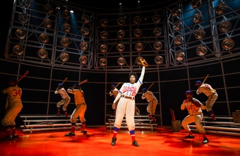 Toni Stone (Santoya Fields) is a little-known pivotal figure in the history of baseball: in 1953 she became the first woman to play on a men's professional team, the Indianapolis Clowns of the Negro American League. Playwright Lydia R. Diamond's story is placed in a stylized setting of bleachers and floodlights (set design by Riccardo Hernández, lighting design by Allen Lee Hughes) with a versatile eight-man ensemble playing most of the men (and a few of the women) in Toni's life. As embodied by Fields, Toni is a magnetic personality with a desire to play pro baseball and the ability and confidence to back up her dreams. To her, baseball is a metaphor for life: everything of importance can be summed up by the weight of the ball in her hand. On the other hand, as skilled as Negro League players were, they were also expected to "bring the show" and act foolish for white audiences, and she also faced some antagonism as a woman in a male-dominated profession. Camille A. Brown has created all-encompassing choreography for the baseball game sequences, bringing her actors together in synchronized yet individual movement to the sound design and original music of Broken Chord. Of course, the play also offers scenes of Toni's life off the ballfield. She wears men's clothes and negotiates a relationship with a businessman named Alberga (smooth Aldo Billingslea), who has to learn that she takes care of herself first. Other supporting characters include an Irish priest who encourages young Toni to play on the boys' baseball team at Catholic school, a coach for white boys whom she wins over through sheer persistence, and Kenn E. Head in a lovely performance as a "working girl" who befriends Toni. The supporting actors all play members of the Clowns as well, but Gilbert Lewis Bailey II sparkles as small, smart, and big-talking Spec. Toni Stone runs through October 3, 2021, in the Kreeger Theater at Arena Stage's Mead Center for American Theater, 1101 Sixth St. SW, Washington, DC. For tickets and information, please call 202-488-3300 or visit www.arenastage.org. By Lydia R. Diamond Cast: |