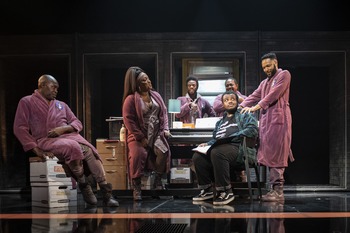 This meta-musical by Michael R. Jackson (book, music, and lyrics) draws a tangled story out of the interior world of one Black, gay, overweight man who loves musical theater and "white girl singers" like Liz Phair and Tori Amos. Usher (Jaquel Spivey), so called because his day job is ushering for the Broadway production of The Lion King, dives deep into his psyche to attempt to write a musical about his experiences while remaining true to himself and dealing with his issues. Usher is "helped" in telling his story by six "Thoughts" who take on the roles of everyone in his life. His doctor warns him that, by not finding a sexual partner he's spitting on the memories of the gay men who died of AIDS. His churchgoing mother wants him to write uplifting gospel plays like Tyler Perry and, incidentally, make a lot of money. His interactions with others are often problematic, even violent on occasion. And he's doing his best to assimilate all these pieces through a mental "strange loop" that creates stories from self-referential data. Spivey is not only the one new cast member, he's also making his professional acting debut as this torturously complex characterand he does it with amazing emotional flexibility. Usher's story may be singular, but it has elements that any audience member (regardless of race, age, sex, or sexual orientation) can identify with. The six Thought performers are shapeshifters who almost float above the stage with Kelly's choreography, embodying their characters with the help of Montana Levi Blanco's minimalistic costumes, working solo and as a group on Arnulfo Maldonado's cleverly functional set. Jackson fuses numerous pop and stage influences in his score (opening with a subtle shout-out to the recently deceased Stephen Sondheim), all covered by five musicians including keyboardist and music director Rona Siddiqui. A Strange Loop runs through January 9, 2022, at Woolly Mammoth Theatre Company, 641 D St. NW, Washington DC. For tickets and information, please call 202-393-3939 or visit www.woollymammoth.net. Book, music, and lyrics by Michael R. Jackson Cast: |