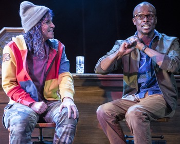 New Yorkers Lola (played by the author) and T (Justin Weaks) both survived childhood sexual abuse, became friends after meeting in a support group, and are struggling to find and sustain healthy relationships. They had earlier decided that they would strike back at the people who hurt them, then together jump off the George Washington Bridge–but the deadline is this very night. Director Jess McLeod plays up the artifice of the situation in a way that cushions the seriousness of Lola and T's plight. First, the characters acknowledge that they have demons, then they get down on all fours and howl to release the demons, then they set out to make things right for themselves. Their antagonists include unscrupulous former bosses, people who trash-talk others regarding their mental health and behavior, and ultimately the people who destroyed their childhoods. Similarly, Misha Kachman's scenic design and Barbara Samuels' lighting design create acting spaces in unexpected places, and Tosin Olufolabi's sound design sometimes takes the audience inside the actors' heads. Lázaro and Weaks give fearless performances as their characters go to extremes, speaking in torrents of profane poetry. Elan Zafir, Migs Govea, and Marilyn Torres play the people in their lives, ranging from a cheerful drug dealer and a hilariously somber support group member to people forced to justify their past behavior. There's Always the Hudson runs through June 5, 2022, at Woolly Mammoth Theatre Company, 641 D St. NW, Washington DC. For tickets and information, please call 202-393-3939 or visit www.woollymammoth.net. By Paola Lázaro Cast: |