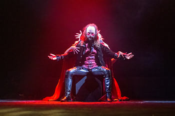 Nathan Weinberger has adapted the script directly from Bram Stoker's original novel, meaning that it differs in some incidental ways from other stage and film versions. He has also incorporated a prologue showing the transformation of Dracula (charismatic Dan Istrate, himself a native of Transylvania) from a medieval soldier defending his country against invaders to a vampire enjoying, and suffering, eternal life. The production, overseen by director Paata Tsikurishvili and choreographer Irina Tsikurishvili, is never less than ravishing visually throughout its 100-minute runtime. Armies battle through clouds of stage fog; Dracula's cape morphs into the carriage taking Jonathan Harker (Jacob Thompson) to the count's castle, where actors wrapped in draperies stand in for furniture; many scenes, especially those with Dracula's fierce undead brides (Maryam Najafzada, Irene Hamilton, Anna Tsikurishvili), pulsate with feverish sensuality. Istrate is properly magnetic in the way he bends others to his will, with resolute Renata Loman a powerful match as the vampire expert Professor Van Helsing. The faith and love conveyed by the two young women of the story, Jonathan's fiancée Mina (Nutsa Tediashvili) and her friend Lucy (Rachael Small), counterbalance the often humorous interactions among Lucy's three suitors: intellectual Dr. Seward (Pablo Guillen), flashy Texas cowboy Quincey (Justin J. Bell), and wealthy Holmwood (Philip Fletcher). Meanwhile, desperate yet defiant Renfield (Irakli Kavsadze), a patient of Seward, dominates his scenes as he carries his cell around with him. Phil Charlwood has created an eerie set with components that change configuration as the scenes rush by, manipulated by members of the company as part of the action. Kendra Rai has created arresting, detailed costumes, mostly keeping to the general color scheme of black and red. Ian Claar's expressionistic lighting design illuminates the stage through the haze and cuts through the gloom with a vivid red spotlight. Koki Lortkipanidze, resident composer, has blended original music with elements of classical works to help build tension throughout. Dracula runs through November 6, 2022, at Synetic Theater, 1800 S. Bell St., Arlington VA. For tickets and information, call 866-811-4111 or visit www.synetictheater.org. Play adapted from Bram Stoker's novel by Nathan Weinberger Cast: |