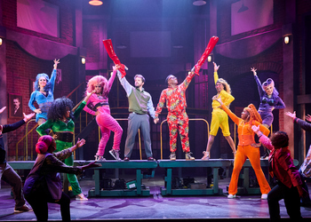 First and most important, Solomon Parker III owns the stage every time he appears as Lola, the London drag queen who energizes Charlie Price (Vincent Kempski) to find success in unexpected places. Lola struts, he flirts, he takes no crap, and he always seems to stand taller than anyone around him. Charlie has inherited his family's struggling shoe factory in northern England. Having grown up with his employees, he needs to keep them from losing their jobs and their purpose. An accidental meeting with Lola during a trip to London inspires him to shift the factory's product from traditional, even boring, well-made shoes to "two and a half feet of irresistible tubular sex" (Lola's description of stiletto-heeled boots) that hold up under a man's weight. Kempski's role has less flash than Parker's, of course, but he demonstrates both the character's backbone and openness to change through the way he carries himself and his soulful singing. Choreographer Tara Jeanne Vallee gives the most impressive moves not just to Lola, but to the corps of six "angels" who provide backup support both onstage and off. Whether at the club where Lola performs or bringing attitude to the shoe factory, these dancers–on press night, Malachi Alexander, Quadry Brown, Robbie Duncan, Shane Hall, Daniel Powers, and David Singleton–glitter in Kendra Rai's rainbow of costumes and the elaborately sculptured wigs (in hues to match the costumes) designed by Larry Peterson. Actually, all of Rai's costumes deserve their own applause. That said, Vallee's choreography is not restricted to the "performer" characters. She has created some ingenious moves on and around the factory's conveyor belt and a fancy tango for Lola and her main antagonist, Don (Chris Genebach). Genebach, along with Alex De Bard as an opinionated employee and Candice Shedd-Thompson as Charlie's snooty fiancée, give well-thought-out performances that flesh out more generic characters. Christopher Youstra conducts seven other musicians from the keyboard, providing the necessary rich sound with a pulsing beat. Kinky Boots runs through March 26, 2023, the Olney Theatre Center, Mainstage, 2001 Olney-Sandy Spring Road, Olney MD. For tickets and information, please call 301-924-3400 or visit www.olneytheatre.org. Book by Harvey Fierstein Cast: |