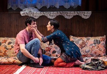 Director Shadi Ghaheri keeps the pressure building throughout the 90-minute runtime, making the audience feel the same relentless tension and threat as the characters do. The script is never preachy because it doesn't have to be; the story tells itself. Khoury's play, a finalist for the 2022 Pulitzer Prize, focuses on Taroon (Mazin Akar), who had been a translator for a U.S. soldier but now has been in hiding from the Taliban for four months. He is living under wraps in the apartment of his sister and brother-in-law, Afiya (Awesta Zarif) and Jawid (Yousof Sultani), awaiting the birth of his child, watching television news reports (the time is during the Obama administration), and constantly expecting to receive visa information from the U.S. government. He is proud of his service and angry that Jawid and Afiya do business with the Taliban through their tailor shop; they explain that their lives would all be threatened if they didn't go along with the regime. Tony Cisek's scenic design shows the constrictions and threats these people face every day: no one, not even family friend and neighbor Leyla (Neagheen Homaifar), can know the truth about Taroon, and they use ventilation fans to cover the noise of their daily lives. The apartment would be tight on space for just two residents; the need to hide a third would be farcical if it wasn't so dangerous. All four actors give exemplary performances, led by Akar's anger, frustration, and occasional desire to forget caution and strike back against an enemy waiting to destroy him. The key to the characters is that they do their best to survive and prevail despite real, constant threats, at the risk of their peace of mind. Selling Kabul runs through April 2, 2023, at Signature Theatre, ARK Theatre, 4200 Campbell Ave., Arlington VA. For tickets and information, please call 703-820-9771 or visit www.SigTheatre.org. By Sylvia Khoury Cast: |