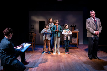 The musical, based on Alison Bechdel's autobiographical graphic novel, received five Tony Awards in 2015 including Best Musical. Composer Jeanine Tesori and lyricist Lisa Kron became the first all-female team to receive the Best Score honor, and Kron also won for Best Book. Where previous stagings of Fun Home have used realistic furniture and settings to present the personal history of adult Alison (Andrea Prestinario, magnetic and moving) as her memories appear before her, Debra Booth's scenic design takes a different approach. The primary setting in the intimate Mead Theatre is the graphic design studio where Alison is creating her memoir, making her way through her thoughts and mementoes as scenes of the past come to life. Imagination, then, is a major component of this production, and attentive audience members will experience the full range of emotions through Alison's journey. Alison views her life through two incarnations of herself at younger ages: Small Alison (Quinn Titcomb, a dynamic 10-year-old giving a remarkably nuanced performance) and college-age Medium Alison (Maya Jacobson). She lives with her two brothers, Christian (August Scott McFeaters) and John (Teddy Schechter), mother Helen (Rebecca Pitcher), and father Bruce (Bobby Smith) in a Victorian home the family renovated in Bruce's small hometown, Beech Creek, Pennsylvania. Both parents are high school English teachers, Helen acts in local theater and plays the piano, and Bruce is also the town's funeral director (the "fun home" of the title). Alison's ruminations jump across time as she examines how the past influences the present and what that could mean for the future. Small Alison demonstrates her aversion to wearing "girly" clothes and describes the sense of kinship she feels seeing a rugged-looking delivery woman in a diner. Medium Alison looks more deeply into herself in college and falls in love and lust with outspoken Joan (Thani Brant). However, as she's discovering herself, she's also learning that her father is living behind a façade and she discovers the reason for the underlying tension she's been feeling for all those years. That sounds melodramatic and depressing, which it is not; while the story is often sad, it resolves with a catharsis for both Alison and the audience. Smith ably shows the gradations of Bruce's personality, judging what he can do in each situation and concealing what he feels he must, while Pitcher gives an aching performance as Helen finally releases the secrets she's been forced to keep. But there are also laugh-out-loud moments, such as when Small Alison and her brothers rehearse a mock commercial for their family business in the style of the Jackson 5, choreographed delightfully by Ashleigh King. Sarah Cubbage's costumes bring the styles and sometimes loud prints of the 1970s back to life; Brian Tovar's lighting design ably shifts among realistic, introspective, and broadly theatrical as needed; and music director Darren R. Cohen joins six other accomplished musicians performing in a variety of styles. Fun Home runs through August 20, 2023, in at Studio Theatre, Mead Theatre, 1501 14th St. NW, Washington DC. For tickets and information, please call 202-332-3300 or visit www.studiotheatre.org. Music by Jeanine Tesori Alison: Andrea Prestinario |