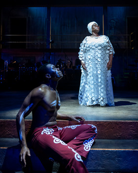 Fela (1938-1997) devoted his life and career to speaking truth to power, not through violence (he left that to the authorities he challenged), but with music and civic involvement–and the 2009 musical conceived by Bill T. Jones (also co-bookwriter and Tony Award winner for his original choreography), Jim Lewis (co-bookwriter), and Stephen Hendel takes the viewer deep inside the man's experiences. The format uses Fela's performances at his venue, the Afrika Shrine, and his own songs to tell the story. According to the theater, this production of Fela! is the first in the U.S. since the show's post-Broadway tour, which launched at Washington's Sidney Harman Hall in 2011. Olney is presenting the musical in partnership with Round House Theatre in Bethesda, Maryland. Director Lili-Anne Brown skillfully brings together a large, talented cast and a sprawling storyline with clarity and a strong awareness of both Fela's message and his effect on the surrounding population. He is not superhuman, but he understands the responsibility of representing people who have no other voice. Breon Arzell's choreography helps immensely, using bodily movement to literalize Fela's message of freedom from oppression. Duain Richmond gives an incandescent performance as Fela, speaking in 1978 during an imagined final concert in the Shrine. (The venue, part of a larger residential and creative compound Fela named the Kalakuta Republic, was destroyed in a violent attack by Nigerian troops in 1977 in reaction to his critiques.) Supported by a sizable ensemble and 10-member onstage band conducted from the piano by S. Renee Clark, Richmond recounts Fela's creation of the Afrobeat music genre and his insistence that people with a public voice must use it to share the concerns of those unable to speak up. He embodies the struggle. Through everything, Fela is guided by the example of his mother, Funmilayo Ransome-Kuti (Melody A. Betts), herself an activist who was killed during the attack on the compound. Betts, in a shimmering white robe and head wrap (all of Rueben Echoles' costumes enhance the impact of the story, mostly through a blend of deep, vivid colors and elaborate detailing), watches over Fela at various points, and her death provokes Fela's most personal protest. Arnel Sancianco's scenic design draws the audience into the Shrine, with dramatic lighting design by Sherrice Mojgani and Kelly Colburn's scene-setting projections. Fela! runs through August 13, 2023, at Olney Theatre Center, Roberts Mainstage, 2001 Olney-Sandy Spring Road, Olney MD. For tickets and information, please call 301-924-3400 or visit www.olneytheatre.org. A co-production with Round House Theatre Cast: |