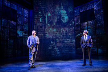 James Graham's play, set in 1969 London, begins with the first meeting between Larry Lamb (Cody Nickell), a veteran journalist who feels undervalued at the successful Daily Mirror, and Rupert Murdoch (Andrew Rein), an ambitious Australian publisher who has purchased the failing Sun newspaper from the Mirror and wants to make it the United Kingdom's highest-circulation daily within a year. Their efforts not only launch Murdoch's career as an international press baron, they also change the entire conception of what journalism should be. Director Jason Loewith, Olney's artistic director, keeps the pacing fast as a large cast, most playing multiple roles, appear and disappear on Tony Cisek's high-tech set. The projections designed by Mike Tutaj flash across a high, curved wall of screens: type, computerized images, scene-setting photos, and occasionally gaps where small groups of actors play their scenes live. The mainstage floor incorporates several concentric turntables, which keep propelling the action even when the actors are not themselves moving. By just laying out the facts, the playwright shows how following the bottom line gradually pushes the purpose of journalism away from advocacy, which may have a partisan agenda but still sticks to the truth of a story, toward profit as the only goal. If audiences would prefer horoscopes, gruesome descriptions of crimes, and titillation to more substantive issues, they're the customers and satisfying their desires is the way to build a media empire. (In 1969, this was a radical idea.) Loewith shows notable control as he juggles the many staging elements, subtly reinforcing the theme by, for example, working with sound designer Matthew M. Nielson to underscore Lamb's wooing of journalists with various renditions of the song "My Way." While Rein is smooth and driven as the man with the original plan, Nickell gives a fierce, explosive performance as a man who gets on board and ultimately sees the ruin as well as the rewards. Craig Wallace is stentorian as a pillar of the journalistic establishment, Maboud Ebrahimzadeh gives an impassioned performance as one of Lamb's early hires, and Michael Glenn sparkles in a small role as a classically trained actor tripping over his rapid-fire lines for a television commercial promoting the Sun. Ink runs through September 24, 2023, at Round House Theatre, 4545 East-West Highway, Bethesda MD. For tickets and information, please call 240-644-1100 or visit www.roundhousetheatre.org. By James Graham Cast: |