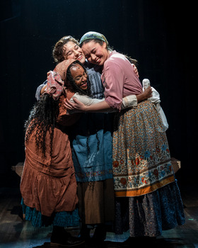 In Flynn's concept, Tevye the dairyman (Howard Kaye) and his wife and two youngest daughters have already been forced out of their Russian shtetl, Anatevka, and are in an immigrant processing center along with travelers of varied races, ethnicities, and societies. Among the family's few possessions is a photo album recounting their earlier lives; by sharing it with the other travelers, Tevye makes them part of a universal story. (Throughout, cast members watch the drama unfold from the edges of the stage until it is time for them to participate.) The problem is that Kaye's Tevye is not the larger-than-life character portrayed in Zero Mostel's Broadway performance or Topol in the film version. Tevye must seize focus whenever he appears, a man with outsized attitudes and emotions; Kaye's portrayal is too contemporary and low-key, sardonic instead of volcanic, and often at odds with other members of the cast. Flynn has also incorporated the Fiddler (Graciela Rey, who performs in choreography and mime) as a symbolic figure throughout the production. Rather than unifying the scenes, often her presence is a distraction. (For example, she is one of the bottle dancers at Tzeitel and Motel's wedding.) That said, most of the cast are dead-on. Rachel Stern's Golde is stalwart, sometimes irritating but never less than supportive of her family. Sophie Schulman (Tzeitel), Sumié Yotsukura (Hodel), and Ariana Caldwell (Chava) give radiant performances as the three eldest daughters, each of whom challenges their father's belief that tradition is the only way to survive in a hostile world, and the larger ensemble is solid, while Cheryl J. Campo is an outspoken hoot as Yente the matchmaker. (Uniformed immigration officials take on the roles of Russian soldiers.) Another way this Fiddler is different from others: Lorna Ventura's choreography moves beyond the re-creation of Jerome Robbins' original dances, most notably with the addition of spirited new all-female and all-male dances in the post-wedding scene. The physical production has many ingenious elements: most props and costume pieces are found in the immigrants' luggage. Milagros Ponce de Léon's scenic design cleverly captures both the forbidding bureaucratic appearance of the immigration facility (rows of file drawers climbing to above the actors' heads) and, behind it, constantly shifting walls and minimal pieces of furniture. Mac Doolittle's lighting design and Matt Rowe's sound design succeed in both naturalistic and dreamlike settings, and costume designer Pei Lee has incorporated subtly specific elements for the major characters. The live musicians, conducted by Christopher Youstra, underpin the production. Fiddler on the Roof runs through December 31, 2023, at Olney Theatre Center, Roberts Mainstage, 2001 Olney-Sandy Spring Road, Olney MD. For tickets and information, please call 301-924-3400 or visit www.olneytheatre.org. Book by Joseph Stein Cast: |