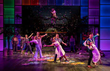 Director Daryl Cloran adapted the play and originally directed it for the Bard on the Beach Shakespeare Festival in Vancouver, BC. The production is highly immersive, with audience seating on both sides of the broad proscenium stage, and packed with spectacle: while Shakespeare uses a wrestling match to dramatize the conflict between guileless Orlando (Jeff Irving) and his scheming brother Oliver (Matthew MacDonald-Bain), he never imagined it looking or sounding the way it does here. The time is the swinging 1960s, first in a neon-lit city ruled by proper, ruthless Dame Frances (Jennifer Lines), then in the hippie-ish Forest of Arden where Frances' deposed sister, Dame Senior (also Lines), lives with a loose tribe of supporters including several musicians. Senior's daughter Rosalind (resolute Chelsea Rose) and her cousin, Frances' daughter Celia (Naomi Ngebulana), take on false identities and flee to Arden, where they become entangled in the lives of several other characters and, to their surprise, encounter Orlando again. The Beatles songs interpolated by Cloran fit snugly into the lives of these characters and their unpredictable world, at first heavy on sweet, swooning love ballads (for two examples, "I Want to Hold Your Hand" and "Do You Want to Know a Secret") but also tailored to character. Jaques (Andrew Cownden), the dour philosopher among Dame Senior's followers, thoughtfully declaims "I Am the Walrus," while courtier and sometimes emcee Touchstone (Kayvon Khoshkam) and sturdy country wench Audrey (Emma Slipp) celebrate their love with "When I'm 64." One throughline is that the women always seem to be a step ahead of the men, whether as themselves or in disguise. Rose is appealingly stalwart as a woman who has endured hardship and is ready to go after what she wants; Ngebulana, gentler in temperament and always supportive, deserves the (unexpected) happiness she finds. Irving, with his open face and straightforward manner, is an Orlando for everyone to love, except perhaps for his sneering older brother–but this is a Shakespearean comedy, so things will resolve themselves in unlikely ways. Lines is a delight in her day-and-night characters: Dame Frances wears a tailored purple suit and pillbox hat, while Dame Senior has gone full hippie with thick frizzy hair and tinted glasses. Carmen Alatorre's costumes help the actors create the characterizations, from Rose's sleek three-piece suit when playing "Ganymede" to Khoshkam's gaudy striped suit, Cownden's existential black turtleneck, and the glittering wrestling costumes. Pam Johnson's scenic design and Gerald King's lighting design set the scene beautifully without cluttering the stage. As You Like It runs through January 7, 2024, at the Shakespeare Theatre Company's Harman Hall, 610 F St. NW, Washington DC. For tickets and information, please call 202-547-1122 or 877-487-8849 or visit www.shakespearetheatre.org. By William Shakespeare Cast: |