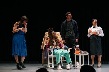 The play, which runs more than two hours without intermission, follows a group of high school friends as they gather before their 20-year reunion. The play not only examines how they have changed and the social upheaval they have experienced (including the Columbine school shootings and the 9/11 attacks), it also operates on a metaphysical level that is better left to the audience to experience. The deceptively simple set is the yard of the home where Ursula (Alana Raquel Bowers) grew up, raised by her grandmother. While Jian Jung's scenic design may seem austere, consisting mostly of a porch with outdoor furniture and a translucent black curtain, Minjoo Kim's lighting design and Jordan McCree's sound design provide some surprises. Joining Ursula at the private pre-reunion party are Emilio (Jordan Bellow), an esteemed artist who now lives in Germany; tightly wrapped Katelyn (Sarah Gliko), who hopes that not mentioning her problems will make them invisible even to her; Kristina (Taysha Marie Canales), an Army doctor with a large family; and, surprisingly, Kristina's friend Francisco (Jaime Maseda), who was not part of their insular high school clique. (At the time they dubbed themselves the Multi-Ethnic Reject Group, or MERGE.) Each performer gets a chance to stand out as the time passes and the darkness seems to gather, but Bellows and Bowers get a through-line that allows them to give the most compelling portrayals. Costume designer Kitt Crescenzo nails the characters' personalities, from Bellow's "artsy" black ensemble and Gliko's pleated dress and ankle boots to Bowers' vivid cardigan. The humor is both uncomfortable and, often, very funny. As created by Jacobs-Jenkins and ably staged by director Morgan Green, the audience gains perspective about these people: they make assumptions about the others and are seemingly incapable of seeing the truth. Woolly Mammoth staged this production in association with the Wilma Theater in Philadelphia, which will present it later this year. The Comeuppance runs through October 6, 2024, at Woolly Mammoth Theatre Company, 641 D St. NW, Washington DC. For tickets and information, please call 202-393-3939 or visit www.woollymammoth.net. By Branden Jacobs-Jenkins Emilio: Jordan Bellow |