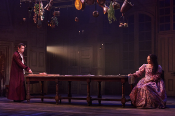 People may know that Mary Shelley created the famous story as a teenager, in 1816, and published it (anonymously) two years later. While the general impression of Frankenstein is as a cautionary tale about human beings playing God, Burns sees it as an examination of parenthood written by a young woman who had already lost two of her four children. (Only one survived to adulthood and outlived her.) Andrew Boyce's scenic design, with its high rear walls and open spaces, represents several rooms in the Frankenstein home in Geneva, Switzerland, where Victor (Nick Westrate) has come after fleeing his laboratory in Ingolstadt. His high-strung nature becomes obvious in the first scene: he wants to speak with Elizabeth (Rebecca S'manga Frank), whom he is to marry the following day, but he refuses to tempt bad luck by actually looking at her. (The orphaned Elizabeth was raised as Victor's stepsister, so that's also a complication.) The audience gradually realizes how Victor's unauthorized experiments have destroyed his self-image as a heroic pioneer of scientific exploration. Rather than try to explain himself, he lies to Elizabeth about the violence trailing him and refuses to take any responsibility for his actions. Westrate ably demonstrates how Victor is overwhelmed by his emotions and knows he can never rid himself of his guilt. Frank, on the other hand, is the heart of the production. She cares about the child she bears her husband (Monroe E. Barnes, who alternates with Mila Weir) and will do what she must to protect the girl. She also sees the humanity in the tortured creature (Lucas Iverson) who, unlike his creator, truly cares for those around him. Anna Takayo also makes a strong impact in smaller roles. The designers have worked together to create the gothic atmosphere without slipping into self-parody. Neil Austin's lighting design and Andre Pluess' sound design and composition surround the audience in a simmering sense of unease, while Kaye Voyce's costumes show Victor's self-isolation while Elizabeth tries to connect with those around her. Frankenstein runs through June 29, 2025, at Shakespeare Theatre Company, Klein Theatre, 450 Seventh St. NW, Washington DC. For tickets and information, please call 202-547-1122 or 877-487-8849 or visit www.shakespearetheatre.org. Written and directed by Emily Burns Cast: |