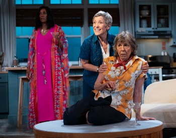 While the action takes place in the Pacific Ocean off the coast of Santa Cruz, California, director Danilo Gambini and the design team have devised a less literal setting in the intimate theater space. Blaze (Alec Ludacka), the surfing instructor, teaches the women the proper techniques for pursuing a wave–but the action comes to life inside the beachside house of group organizer Claudia (Jacobson). Jimmy Stubbs' set design uses indoor furniture such as tabletops and upholstered chairs as settings for exploration in the ocean near the shore. Similarly, Valerie Therese Bart's costumes define the women's personalities without using swimwear: a simple blouse and pants for Claudia, a flowing pink dress and multicolored wrap for Wynn (Delissa Reynolds), and a flowered shirt and knee pants for Gary (Katherine Cortez). Surfing in this play also serves as a symbol of maintaining independence, an issue these post-retirement-age women must face on a daily basis. They have known each other since their school days and things are getting more difficult as the years pass. Claudia tries to hold the group together as Wynn is facing marital problems and, more worryingly, Gary is slipping into dementia. At the same time, Blaze has his own issues behind the façade of the kid who lives to surf. All four of the actors give well-thought-out performances that incorporate levity and avoid smugness. Wipeout runs through July 27, 2025, at Studio Theatre, Milton Theatre, 1501 14th St. NW, Washington DC. For tickets and information, please call 202-332-3300 or visit www.studiotheatre.org. By Aurora Real de Asua Cast: |