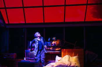 Director Howard Shalwitz–who previously served almost four decades as the company's artistic director–is working with a cast of Washington area all-stars: Naomi Jacobson (recipient of three Helen Hayes Awards), Michael Russotto (one Helen Hayes Award and several nominations), and Brigid Cleary (four nominations), along with the accomplished Claudia J. Arenas, and Ro Boddie. Micha Kachman's scenic design captures the seemingly ordinary setting of a lounge in the SeaBreeze Hebrew Home for the Aging: a fireplace, cozy chairs and sofas, a view of palm trees and surf through a wall of windows, and a slanted translucent roof. A self-selected "Supper Club" of residents–Barbara (Cleary), Fanny (Jacobson), Hal (Russotto), and Ruth (Arenas)–meet here every night to play games and share their lives. Gradually, the audience picks up on the extraordinary things the club members have come to view as part of their everyday lives. There's the fact that all people age 75 and over are now required to leave their private homes and live in a facility like theirs if they can afford it, or in encampments if they cannot. They have all lost loved ones in ecological disasters. In addition, their current home seems to have only a single employee (Boddie), or maybe a succession of identical workers: it's hard to tell through the face-obscuring protective gear he wears (Ivania Stack's costumes suggest the unseen dangers that words can't express). Most worrying is the overarching sense of catastrophe lurking just outside, and the question of whether their home will keep them safe from such rumored external threats as flocks of enormous man-eating ostriches, lack of needed medicines, widespread famine, onslaughts of rain and hail, and bursts of fiery light from the sky (well articulated through Colin K. Bills' lighting design). Ruth, whose late husband was a rabbi, says she believes "our most transformational journeys can happen even towards the end of our lives," but the others aren't so sure. The World to Come runs through March 1, 2026, at Woolly Mammoth Theatre Company, 641 D St. NW, Washington DC. For tickets and information, please call 202-393-3939 or visit www.woollymammoth.net.