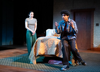 The Milton space is the most intimate of Studio's three venues, and director Taylor Reynolds capably expands the action beyond the stage: some moments of dialogue take place in the midst of the audience. Sibyl Wickersheimer's unit set represents numerous bedrooms where, over the years, Ana (Ismenia Mendes) is trying to make sense of her life. The drama, with no intermission, begins with teenage Ana's life at boarding school and incorporates bits and pieces of her experiences as she ultimately becomes a respected author. Ana feels adrift and isolated at school until she meets and makes an emotional connection with fellow student Jonah (Rohan Maletira). Later scenes examine Ana's difficult home life with an abusive (offstage) stepfather and an unsettling relationship with her stepbrother Danny (Quinn M. Johnson), and eventually her stay at a writer's retreat where she meets Steven (Louis Reyes McWilliams). While this scattered form of storytelling eventually reveals some of Ana's truths, others are left unresolved for the audience to consider. While Mendes is the incandescent core of the play, the three men in her life also shine in their unique ways. Maletira conveys youth and learning with an endearing sweetness; Johnson demonstrates his character's dangerous lack of impulse control; and McWilliams provides the calm and generosity that brings everything together. Also deserving mention are Andrew Cissna's lighting design, how it helps create and intensify the mood of each scene, and Fabian Obispo's sound design. Jonah runs through April 19, 2026, at Studio Theatre, Milton Theatre, 1501 14th St. NW, Washington DC. For tickets and information, please call 202-332-3300 or visit www.studiotheatre.org. By Rachel Bonds Cast: |