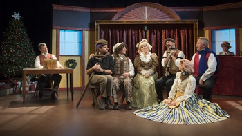 The Old Bull and Bush is a real historic pub in the Hampstead neighborhood of London, which became famous when music hall star Florrie Forde performed a song that referenced it in 1904. Catherine Flye, author and director, originally presented this show at Washington's Arena Stage from 1997-2003 and brings it back with some of the original performers. The cultural immersion begins in the theater's lobby, which houses a pop-up pub open before the show and at intermission. In addition to alcoholic beverages, the menu includes such British snacks as mince pies, sausage rolls, and prawn cocktail-flavored crisps (or potato chips, as they're known on this side of the pond). The music hall was the rough English equivalent of vaudeville, with acts ranging from the ridiculous to the sentimental, and a heavy dose of audience participation. In other words, the up-for-everything cast does a little of this and a little of that, with almost continuous accompaniment by pianist and music director Joseph Walsh. Highlights on the silly side: Albert Coia, a sparkplug in a loud plaid suit (costumes designed by Michael Sharp) in his two solos, "Me Little Yo-Yo" and "The Night I Appeared as Macbeth," and a bit where he plays a ventriloquist's dummy; Flye as a bedraggled fairy from the English pantomime tradition and, as stage monologist Joyce Grenfell, playing a nursery school teacher doing her best to keep the children's Nativity play from falling apart; and Tracey Stephens as Forde, vamping through "Please Don't Touch My Plums." On the more serious side, Bob McDonald recounts the story of the Christmas Truce of 1914, when British and German troops in France laid down their arms and embraced their opponents on the first Christmas Day during World War I, with the song "Christmas in the Trenches." He also performs Rudyard Kipling's "The Road to Mandalay" in appropriately imperial style and gives a lovely performance of "The Christmas Song," although it's not true to the period, having been written in the U.S. in the 1940s.