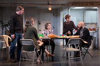 While the Eisenhower Theater at the Kennedy Center in Washington might seem too large a space for this intimate comic drama, the five actors and director Joe Mantello make it work, assisted by David Zinn's lavishly detailed two-level set. Erik Blake (Richard Thomas) and his wife Dierdre (Pamela Reed) have driven from their home in Scranton, Pennsylvania, to New York City's Chinatown, where their daughter Brigid (Daisy Eagan) and her boyfriend Richard (Luis Vega) are hosting Thanksgiving dinner. Also in attendance are Brigid's sister Aimee (Therese Plaehn) and Erik's mother Momo (Lauren Klein), who has Alzheimer's disease and uses a wheelchair. The concerns at first center around money and security. Erik worries about Brigid and Richard living in a two-story apartment (ground floor and basement) that was underwater during Hurricane Sandy. Brigid, an aspiring musician who mostly tends bar, and Richard, a graduate student in social work, explain that this apartment was roomy and what they could afford, so they cope with the roar of the washer and dryer in the basement hallway and the loud banging from overhead. Everyone has an issue here, which is why the characters say things like "Don't you think it should cost less to be alive?" and "We're doing OK, aren't we?" Aimee, a lawyer, is dealing with both the end of a relationship and serious health concerns, while Dierdre describes finding satisfaction in helping poor refugees find a home in Scranton. Momo has some lucid moments, but she also provides an unsettling look into the future. Mantello is working with a cast of all-stars, from Thomas' anguished gravitas and Eagan's barely submerged resentment to Klein's total immersion in her role (she's the only member of the New York cast in the tour). Kennedy Center |