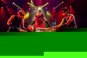 Director Paata Tsikurishvili and choreographer Irina Tsikurishvili, who also plays the vicious (if, at times, justified) Tamora, Queen of the Goths, have given the 95-minute production a feverish look and pace on Phil Chartwood's seemingly subterranean scenic design with Brian S. Allard's beams of light visible through haze. The major pieces of scenery are several large rectangular boxes, which can suggest battlements or coffins, and washes of red light symbolize the frequent flow of blood. Shakespeare set his story in a fictionalized Roman Empire, but the lure of people to destroy each other is timeless. Titus (Philip Fletcher, commanding and ultimately tortured), leader of the Roman troops battling the Goths, captures Tamora, her three remaining sons, and her confidant and secret lover, Aaron the Moor (Audrey Tchoukoua), after witnessing Tamora killing one of his own sons. He reciprocates for his son's death by sacrificing the oldest of Tamora's remaining sons to the Roman gods in thanks for his victory. Matters progress from there. The Tsikurishvilis understand how to make stage images that resonate, including the contrast of Tamora, in sparkling red and black, and Titus' daughter Lavinia (Irina Kavsadze), in gauzy white (Erik Teague has designed the costumes, some of which border on expressionistic); the battle for power between the two sons of the dead emperor, aggrieved Saturninus (Dan Istrate) and headstrong Bassianus (Scott Whalen); Tamora's feral sons Demetrius (Dallas Tolentino) and Chiron (Alex Mills), smeared with dark makeup to suggest masks and dressed in the manner of contemporary "Goths"; Aaron, majestic yet agile; and Titus' sister Marcia (Tori Bertocci), Marcus in the original play, who provides maternal warmth along with gravity. Synetic Theater |