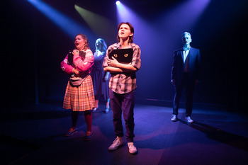 Set in 1984 Cincinnati, the story follows the efforts of 14-year-old Patrick and his devoted friends (the self-described "weird little kids," bonded by their love of horror films, Star Wars, and, in some cases, musical theatre) to create a haunted house impressive enough to help Patrick achieve his goal of succeeding the outgoing director of the local YMCA's annual haunted house event. The show's greatest strength is in its score. Written by Richard Oberacker and Robert Taylor, the musical duo behind Broadway's Bandstand, the songs combine catchy, memorable tunes with pleasing lyrics. They are performed well by the sharp ensemble, accompanied by a live band hidden somewhere in the theater's attic. (Both the Vegas Theatre Company and the Majestic Repertory Theatre set an example for other producers who use recorded tracks because they have "no room" for live musicians.) Daz Weller's direction is flawless and crisp. The show is perfectly paced, the scene transitions smooth and seamless, and the energy levels consistently high. Inevitably, the older, more experienced performers (Jason Collins and Christine Hudman, playing an array of adult characters) exude a polish and magnetism that outstrip most of their younger counterparts. While Weller extracts good performances even from the less experienced members of his cast, the show is elevated each time Collins or Hudman makes an entrance. Another of the more seasoned performers, Rashida Makeda as Joy, raises the roof with her outstanding vocals. Among the younger performers, Nick Katopodis as the nerdy Tim and understudy Khloe Judd, stepping in as goth girl Jen, both show strong potential, delivering seemingly effortless performances. The production boasts some impressive visuals as well, although they take some time to appear. Initially, and throughout most of the show, the set is largely bare, with just a few props and furniture pieces indicating changes of scene. A colorful video panel on the downstage deck offers kinetic displays to accompany the livelier numbers. Among the best design elements, however, are the creative and colorful props (including puppets by Skylar Meek) featured in "A Cultural Institution," a musical homage to the eclectic and delightfully tasteless Spencer Gifts (a fun reference, though possibly too dated for modern audiences). Talking edible undies, anyone? This sequence is surpassed only by the grand finale, a visual extravaganza of outrageous costumes and puppetry. As this is still a work in progress, the authors might want to consider some improvements to their storyline and character development. For example, several dramatic conflicts are resolved so quickly and so easily that they barely register. (Mass defection to the high school musical? Nah. Destructive rampage? Instant forgiveness. Huge budget shortfall? Dad writes a check.) Some of these could be escalated to present more serious challenges for the characters; at least one could be omitted altogether. A crucial plot point turns on a 14-year-old girl's petulant act of betrayal, but the teen's motivation (payback for hurting a friend's feelings) seems rather slight, especially when a more plausible motive (revenge for stealing a friend's affections) is presented earlier but inexplicably dismissed. (The touching song, "Fine With It," soulfully performed by Ashlee Grubbs, sets up this motive nicely; it seems a shame to waste its powerful implications.) When the cadre of friends are first introduced, each reveals a brief snippet of their problems at home. But those problems, and their impact on each of the friends, are rarely mentioned again, and are easily forgotten. This is a missed opportunity to add depth to the characters, explore their motivations, raise the dramatic stakes, and get the audience more emotionally invested. (For example, why does young Patrick feel compelled to lie to his father?) Although this omission affects all of the teen characters, it is especially problematic for the group's newcomer, Jason. His mother is fighting cancer, but she seems wonderfully open, accepting, warm and loving; so why does Jason engage in reckless behavior that places his future at risk? One of the featured teens, Joy, is not originally part of the friends group, but is drafted later to serve as the art director for their haunted house. Introduced as the only African-American child in the school, as well as a gifted visual artist, this youngster probably feels as much a "weird little kid" as the rest of them, making it odd that the plot initially sets her apart from them. This leaves the unfortunate impression that they welcome her only because she serves a critical need, not because she is a worthy friend herself (although they certainly treat her as such once she joins their enterprise). Some of the young people's dialogue needs attention as well. In several instances, the younger characters voice attitudes or thoughts that seem incongruous for their age and generation. When Jason asks Joy where she's from, and she replies "Cincinnati," Jason follows up with "No, where are you from originally?" Later, wrestling with whether to lose his virginity to his first crush, Patrick explains that he's worried about AIDS. Is this really what 14- and 15-year- olds were thinking about in the mid-1980s? After the high-flying finale, the show ends with an epilogue about the friends' futures. Unfortunately, the message is mixed and confusing. Adult Patrick tells his younger self that the teens will achieve their dreams if young Patrick wants them to. If the story ended on this Disney-esque note, the audience could float out of the theater on a fantasy bubble. However, having inflated the bubble, the writers immediately puncture it, revealing that some dreams did not come true. (Does this mean Patrick did not want them to?) Indeed, one character dies far too young, for reasons unstated but obvious to all. If the play is going to reference the AIDs crisis, surely it deserves mo
