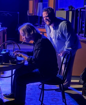 Shepard's play explores the relationship between the insecure Austin, a married screenwriter, and his loutish brother Lee, a drifter who lives rough in the California desert and burglarizes homes for pocket money. Austin is housesitting for their vacationing (and slightly batty) mother while awaiting a Hollywood producer's visit to seal the deal on his new project, when Lee arrives as an unwelcome guest. (Their unseen father, the "old man," is a destitute and toothless alcoholic spiralling toward death somewhere in the desert.) Lee delights in goading Austin, and their simmering hostility comes to a head when Lee pitches a puerile and cliché-ridden story to the producer, who declares it an "authentic" story of the West, abandoning Austin's well-crafted project for his brother's chimeric wisp of an idea. Mad with frustration–Lee can barely type, much less produce a screenplay, while Austin is desperate to prove that he, too, can be a tough guy–the brothers get increasingly physical. In A Public Fit's production, Wilam Fleming plays Austin as the aspirational and quintessentially middle-class male, trying to follow the accepted playbook for personal and professional success, knowing that he must please someone higher in the pecking order (his producer) in order to achieve his modest ambitions. Ryan Ruckman's rough-and-ready Lee lives only to please himself, treating other people's possessions as property he can commandeer at will. He functions on impulse, and what matters at one moment is forgotten soon after. (His one-time desert companion, a fighting pit-bull, was a "good dog" even though he can't remember what happened to it.) Both actors are convincing as brothers who repeatedly lock horns in futile attempts to prove their mettle. Although her time on stage is brief, Valerie Carpenter Bernstein makes a strong impression as the combatants' mother, returning early from her vacation only to come face to face with devastation. Ben Loewy also does a fine turn as Saul, the genially oily producer who measures authenticity in dollar signs. This is a feisty, gutsy production. Jake Staley's direction is well paced, and the brothers' power struggle unfolds naturalistically, as each vies for the alpha role. There is action even during the short blackouts between scenes, as the audience watches the brothers' silhouettes in pantomime against scenic designer Diane Walton's striking backdrop of endless desert, mountains and sky. In Shepard's hands, the rugged West becomes a metaphor for the unexamined life, bringing to mind the words of poet Robert Frost: "I have it in me so much nearer home/To scare myself with my own desert places." True West, presented by A Public Fit Theatre Company, runs through March 3, 2025, at SST Studios, 4340 S. Valley View Blvd., #210, Las Vegas NV. Performances are Friday, Saturday, and Monday at 7 pm, Sunday at 2 pm. Tickets are $35-45. For tickets and information, please visit www.apublicfit.org. Cast: Additional Creative: |