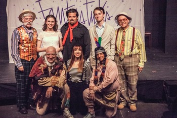 First staged in 1959, the play is beginning to show its age. The tale of two fathers who pretend to feud in order to lure their children into falling in love, and who enlist a group of fake bandits to feign the attempted abduction/rape of the daughter in order to give the son an opportunity to rescue her, feels a bit strange in an era which recognizes rape and other sexual abuse as horrific crimes, and where the notion of women as helpless victims and men as essential protectors seems archaic. These father characters are supposed to strike us as cute and foolish, but today we would report them to Child Protective Services. Like other plays that incorporate dated social attitudes, (including The Taming of the Shrew and The Merchant of Venice), any modern production of The Fantasticks needs a creative strategy to overcome this weighty baggage. Unfortunately, the Super Summer Theatre Studios and Five Stars Entertainment production doesn't bring anything fresh to the table. Under Bill Fayne's direction, the production is soulful and sincere, but largely uninspired. It is also quite static, with minimal choreography. Watching naive youngsters sing sweet songs becomes cloying rather quickly when there is no dynamism on the stage. The small amount of choreography is well executed by Stephen Rinck and John Wennstrom, who deliver respectable performances as the foolish fathers, although they look and act more like grandfathers. (Perhaps they conceived their children very late in life.) There are, however, two bright spots in this production, and they are bright indeedso much so that every acting student in southern Nevada should make a beeline for this tiny black box theatre tucked away in an industrial district. In the roles of threadbare itinerant actors who agree to play the bandits in the fake abduction, veteran performers Lou De Meis and Rick Ginn show us what great acting is all about. Whenever they are on stage, the production leaps to a professional level. What a treat it would be if both of these actors could return to the local stage in a production of Shakespeare or another classical play. Another performer worth watching is Madison Simpson as The Mute. Even without a word of dialogue, Simpson's expressive face, graceful and economic stage movement, and natural presence make her a standout in every scene. The Fantasticks, through November 19, 2017 (Thursday-Saturday at 7 pm, Saturday and Sunday at 2 pm) at the Super Summer Theatre Studios, 4340 S. Valley View Dr., Las Vegas NV. For tickets or further information, go to www.supersummerthatre.org. Cast and Musicians Additional Creative: |