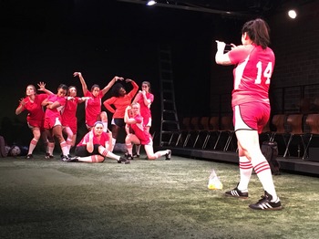 The "Wolves" are an indoor soccer team made up of girls who are fiercely dedicated to their sport and to their teammates. The play's structure follows their winter season, from one game to the next, as they look ahead to the spring showcase where they will be evaluated by NCAA scouts. We eavesdrop on their pre-game workouts, where the physical drills are punctuated by lively exchanges on topics ranging from the Khmer Rouge to menstruation and back again. The result is a kind of choreography that is both physical and verbal. As in real life, the conversations overlap at times, and you have to choose which ones to listen to. Then DeLappe artfully brings the threads back together again. (Although you'll be tempted to make a return visit to catch any snippets that you missed.) Along the way, the playerswhom we know only by their jersey numbersface the challenges of friendship and betrayal, inner demons, social and religious differences, and personal tragedy. None of this feels formulaic; it's simply a glimpse of modern girls clawing their way to adulthood. This is the essence of an ensemble production, and director St-Pierre has assembled an excellent cast and melded them into a team of their own. Some of the strongest work comes from Sabrina Cofield as #11, Anastasia Weiss as #2, Jasmine Kojouri as #46 (the new girl in town), and Valerie Carpenter Bernstein as a Soccer Mom. As befits the subject, the play moves at an energetic clip. St-Pierre has cast the play with adult women rather than teens, and wisely so. It would be hard to find teenagers with the stage chops to play these roles with the same conviction, and if the actresses cannot completely transform themselves into 16-year-olds, they capture the essence of female adolescence. The casting choice also highlights one of DeLappe's subtler themes: In witnessing the bonding of a girls' soccer team, we are also seeing the foundation of political and social phenomena such as Emily's List and #MeToo. Title IX, with the resulting surge in women's collegiate sports, has produced a generation of women who won't back down. The Wolves, through February 18, 2018, at the Art Square Theatre, 1025 South First St. #110, Las Vegas, NV. Performances Thursday-Saturday at 8 pm, Sundays at 2 pm. For tickets ($15-$25) and further information, go to www.cockroachtheatre.com. Cast: Additional Creative: |