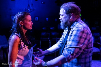 Chekhov's style of comedy is notoriously hard for contemporary audiences to fathom, but Posner's self-described "sort of" adaptation takes an off-the-wall approach that ripples with humor while remaining largely faithful to the original characters and their timeless dilemmas. There are moments of meta-theatricality, where the actors acknowledge the conventions of being in a play, as well as audience interactions that showcase the cast's improvisational skills without sacrificing the integrity of the performance. Actors enter and exit from all corners of the venue, putting the audience squarely in the center of this tale of the Everyman. There are strong performances from each member of the talented cast, combining energy and stage presence with the economy and discipline that distinguish professional theatre. One can sense that there was a rigorous rehearsal process. And a special award should go to combat director Kevin Stevens for not one but two stage slaps that are remarkably realistic. The beating heart of the ensemble is Erik Amblad, who is outstanding as the woebegone Vanya. Amblad's magnetism permeates the stage, even as the sad Vanya stands vanquished in a corner like a whipped puppy, clutching a single wilting flower. (If this sight makes you want to say "Aw" out loud, feel free. It's that kind of a production.) His sense of timing is magnificent. And his protuberant belly–accentuated by Candice Wynants' costume design–becomes a character in itself. Whitney Lehn Meltz's set design mirrors the characters' sense that life just hasn't worked out the way it should have, with tables, chairs, and shelves hanging at odd angles, drooping walls, and a ragged textile draped haphazardly across the stage and playing area, doubling as a half-curtain and a threadbare carpet. Do whatever you can to snag a ticket to Life Sucks. And don't be surprised if you find yourself googling "ocelot" immediately after the show. Life Sucks runs through November 20, 2022, at the Art Square Theatre, 1025 S. 1st St. #110, Las Vegas NV. Performances are Friday at 7:30 p.m. and Sunday at 2 p.m. and 6:30 p.m. (no performance on Saturday). Tickets $20-$38. For tickets and information, please visit go to www.theatre.vegas/life-sucks. Cast: Additional Creative: |