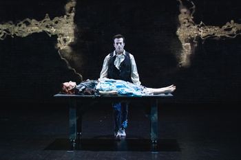 Combustible Company's play Monster Heart, written by artistic director Kym Longhi (who also directs this production) with further development by the acting ensemble, is a fresh–and eerily beautiful–take on the Frankenstein tale. It weaves together two stories that are closely related. There is the well-known tale of Dr. Victor Frankenstein, driven to exercise control over life in response to the death of his dear mother by cobbling together harvested body parts to create a new life–which takes the form of a monster. This is paired with the story of the novel's creation by Mary Shelley, a mere eighteen years old at the time and embroiled in an affair with heralded romantic poet Percy Bysshe Shelly. Mary's mother was Mary Wollstonecraft, a feminist writer; her father was William Goodwin, a philosopher and novelist considered one of the first modern proponents of anarchism. Both profoundly affected her, even though her mother died shortly after her birth, leaving Mary to be raised primarily by her father. Little wonder that the child of this union flaunted conventionality in her life with Shelly, whom she later married, and authored a novel that railed against the dangers of enlightenment-age science and rationality. The play pivots between the two narratives, making their pairing seem inevitable, and the connection between Mary Shelley and the fictional monster she dreamt up seems to be a meeting of hearts. Each scene is introduced with a title projected on the real wall of the stage, often with snippets of text and with dates. This proves to be helpful in following the shifts between the two narrative streams and movements back in time to present Mary's origins. Sometimes there are lines taken from William Goodwin or Mary Wollstonecraft, framing the effect Mary's parentage had on her. Monster Heart is conceived as something of dream, with the cast entering in slow, ballet movement, as if underwater. There is a minimum of spoken dialogue. Some of it spoken by Mary from a writing table at stage left, reading aloud from letters or diary entries that contain the outline of her life. Much of the narrative is provided by way of the actors' movement, sometimes in pairs, sometimes in larger groupings, often creating imagery that is as beautiful as it is ingenious, and at times heartbreaking, while at other times quite comical. Two webbed matrices hang on either side of the stage that allow action to sometimes move vertically as well as horizontally, with actors climbing up or swinging upon the supple rungs. On opening night, Seth Campbell, one of the seven ensemble members, was out due to illness. As there are no understudies, the company gathered before the play began and made adjustments to allow Campbell's parts to be absorbed by the other six actors. I only found this out after the play, and would never have thought there was a cast member missing had there not been seven names in the program, as opposed to the six I saw on stage. Hopefully, all seven were able to appear in subsequent performances, but the fact that the adjustments were made so seamlessly speaks to the intense collaboration among ensemble members and the fluidity of presentation in this piece that makes the whole much greater than the individual parts. That said, the actors do phenomenal work individually, as well as collectively. Erik Hoover is exquisite in the roles of Percy, Frankenstein, and the monster–his head covered in a fantastic mask designed by Longhi, grotesque and yet truly a work of art. Julianna Drajko seems to draw inspiration from the spirit of Mary Shelley herself, portraying Mary, Frankenstein, and a second monster–the mate the first monster demands be created so that he not be condemned to a life of abject rejection and loneliness. Hoover and Drajko work beautifully together, embodying Mary and Percy's desire, in contrast to the fierce exchanges between Frankenstein and his monster. In addition to playing Shelley's first wife Harriet, whom he abandons for Mary, Joni Griffith provides musical accompaniment on violin and a twanging crosscut saw. Griffith composed the evocative musical settings and vocal arrangements for a number of Percy Bysshe Shelley's poems that offer commentary on the unspooling narrative, adding immeasurably to the moodiness of the piece. The other actors–Nick Miller as Goodwin, Anna Pladson as Mary Wollstonecraft, and Madeline Wall as Claire Claremont, Mary's step-sister–each meld seamlessly into the physicality that heaves through the production. Aside from those hanging matrices and the writing table mentioned, there is little in the way of a set, but video images created by Jim Peitzman do an astonishing job of illustrating the setting and emotional atmosphere of each scene. Southern Theater's proscenium arch, with its sense of faded grandeur, provides a perfect frame for these images. Karin Olson's lighting dovetails in expert precision with the video imagery, along with Jacob Davis's sound design. Kasey Helmstead's costumes have a period sense, with skirts worn by the women that seem pieced together from random scraps, much as the monsters are pieced together from random body parts. The overall effect is a complete immersion of the senses, with light, sound, moving image, dialogue, music, and physical movement coming together to create the experience that is Monster Heart. We are reminded that the monster created by Dr. Frankenstein did not spring to life either good or bad, but as a force seeking his place in the world. The harm he does is not in his innate nature, but a response to being rejected by all who see him and the absence of any place of belonging. He cries out, "Who are my friends? Where are my relations?," and we know he is not evil, but wounded. The monster is in search of his place, hoping to connect through love, but when love doesn't come to him, he will connect through fear. Mary Shelley too sought connection through love, pushing ahead through hear