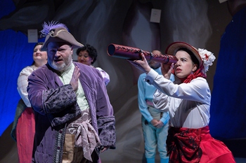 In spite of Woolf's title, Orlando is not a biography, but a fictional narrative, picaresque and fanciful in nature as it spans over 300 years and involves a young man who, at the age of thirty, becomes a woman. There is no gender reassignment surgery involved. He–Orlando–simply falls into a deep sleep and awakens seven days later as she–Orlando. All of Orlando's memories, preferences, mannerisms, and whatever else constitutes one's identity remain as they were. It is Orlando's physical form alone that has transformed. Woolf is known to have been inspired to write Orlando by her close friend and lover, Vita Sackville-West. Sackville-West was known to be far more adventurous than Woolf in her relationships and loves, though far less accomplished a writer. Whether Woolf meant to imply that at Sackville-West's core was a male persona, or to claim that a person who is true to themselves–with the real Sackville-West and the fictional Orlando as two examples–cannot be bound by the constraints of gender, one can only speculate. To avert any reservations, it is not necessary to know anything at all about either Woolf or Sackville-West in order to thoroughly enjoy Ruhl's creation. In the early 1600s, Orlando, a sixteen-year-old of good breeding and property, declares his intent to be a poet. His pretty looks and genteel manner catch the eye of Queen Elizabeth I, who invites Orlando to reside at the royal court. Many women are drawn to him, but he to only one–an elusive Russian princess named Sasha. With the Great Frost Fair of 1608 in full swing, their relationship develops while skating on ice–an indicator of neither great stability nor endurance down the road. This defining episode in Orlando's life is followed by many more escapades, which lead to seeking refuge in Constantinople, returning to England on a languid sea voyage, and eventually marriage to a man who seems a uniquely apt match for Orlando. As he, and then she, accumulates these experiences, time passes not by the year or the decade, but by the century, ending in 1928, the precise year in which Woolf's book was published. Upon becoming female, Orlando is irked by the many disadvantages the change from male to female confers. In time, though, Orlando comes to appreciate that there are also advantages to being a woman in a society that expects women to sit comfortably, passively by while men serve and protect them, especially the case during the Victorian era. All the while, Orlando maintains the ambition of becoming a poet, though mostly in a theoretical sense as neither the male nor the female Orlando seems to have much aptitude for it. Surely, there is the desire to express experience with loft poesy, but alas, it is always the same as when Orlando struggles mightily to describe the grass before, after much effort, spitting out the word "green." Director Carin Bratlie Wethern deftly uses the ensemble, who take turns throughout the two-act play. There are wonderful effects, such as a scene in which a buzzing housefly ricochets around the room–executed with the simplest idea, yet smashingly effective. Aside from Courtney Stirn, marvelous as Orlando, cast members play multiple roles as well as forming a chorus that announces portions of the story in the manner of story theater, with actors miming events as a speaker narrates them. Wethern threads a sharp needle that pulls the cast members' frequent changes of character, along with altered settings and leaps across time, into a whole that is always coherent and altogether enjoyable. Stirn's Orlando comes across as an androgynous figure, a shade too pretty as a young man, a shade too handsome as a woman, and never completely at peace with either status. Stirn underscores how the business of figuring out his or her identity, not merely in terms of gender but in terms of purpose in this world, occupies Orlando's life, so that any attachments made to men or women are always subject to whatever may be discovered about ones true calling. The remaining eight actors are a splendid ensemble. There is a varying degree of success in applying the called-upon accents to their speech, but no egregious pitfalls. Of particular note are: Amber Bjork as Sasha; Michael Quadrozzi as Marmaduke, Orlando's agreeable husband for a slice of her life; Andrew Troth as a solicitous sea captain; and Rachel Flynn as both the Archduchess and the Archduke, both in mad pursuit of Orlando. The well-conceived costumes are invaluable to making Orlando work, as Mandi Johnson's designs allow for modifications that shift the styles from one century to another, with Orlando's apparel realized with particular wit. The set designed by MJ Leffler is dominated by an enormous oak tree, where Orlando returns time and again seeking inspiration for his poetry. A graceful wood-framed chaise at stage right and a bistro table with a couple of chairs at stage left are the only other scenery, yet we see the great forest Orlando and Sasha skate past, and a gathering of icebergs as the Great Frost recedes, thanks to utterly simple but ingenious stage effects. Emmet Kowler's lighting and Jacob Davis' sound design further contribute to what feels, in sum, like a large-scale production achieved in modest terms. While Orlando raises a number of ponderous questions, it does so in a light and breezy manner, so that a viewer may choose whether to jump into the deep water and try to work through the issues Ruhl–and Virginia Woolf before her–raises, or to sit back and simply enjoy a delightful entertainment. Of course the two are not mutually exclusive, as I found myself responding in both ways. As Orlando discovers, the world need not be reduced to binary choices. Orlando, presented by Theatre Pro Rata, runs through March 27, 2022, at the Crane Theater, 2303 Kennedy Street N.E., Minneapolis MN. Tickets: sliding scale, $16.00 - $61.00. Tickets must be purchased in advance online, no ticket sales at the door. For tickets and info