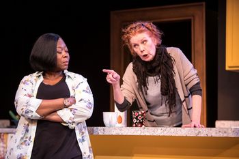 With empty space in her house, and, presumably, a need for extra cash, though her financial state doesn't seem to be an issue, Sharon advertises for a roommate. At fifty seven years of age, this will be a big change for her, but ahead she goes, out on that particular limb. Who shows up but Robyn (Allison Edwards) who appears close to Sharon in age, but otherwise nothing like her. Robyn has moved to Iowa from New York City - the Bronx, to be precise. Robyn confirms Sharon's sense that the Bronx is a far cry from Park Slope, though Sharon's visions of the dangers of life in the Bronx exceed Robyn's somewhat nonchalant description. Robyn barges in with the bluster one associates, rightly or not, with New Yorkers, exacerbating Sharon's nervousness about making, what feels to her, a big step outside her comfort zone. It doesn't help that Robyn avoids any disclosures about herself–her profession, her reason for moving to Iowa, what plans she has–and what she does disclose is quite unlike the company Sharon is accustomed to: Robyn is a vegan, a Lesbian, and a pot smoker. What has Sharon gotten herself into? It turns out that Sharon, wittingly or not, seems to have known exactly what she was getting herself into. Not the specifics, for she could not have guessed the particulars of Robyn's colorful past, but she is opening herself up to this incursion upon her life, ready to rip apart her prim trappings and see what she has missed all these years. Which is what leads me to claim that Sharon is the central character, as she is the one who truly changes. This, in spite of the fact that Robyn is on stage almost as much as Sharon, and that as the play opens it appears that Robyn is primed for a change–hence, the move from the Bronx to Iowa. Still, as the play, running 105 minutes without intermission, unspools, tables begin to turn. Playwright Silverman gives us a clue as well in titling the play The Roommate and not Roommates, plural. The implication is that one character is the play's touchstone, while the other, the titular roommate, is the force that acts upon the center to bring about change. Silverman writes witty dialogue with an authentic feel to it, and the two actors on stage deliver it like the gold medal pros they are. Greta Oglesby is known locally for a celebrated star turn in Caroline, or Change at the Guthrie, as a feet-firmly-on-the-ground Lena Younger in Park Square's A Raisin in the Sun and in repeat appearances expounding joyful spirituality in Penumbra's Black Nativity, along with numerous other acclaimed performances–but not necessarily for comedy. She quickly proves to us that she can handle comedy just fine, thank you, especially so when nuance is called for, as in her nonverbal objections to Robyn breaking out a cigarette (in spite of the fact that she had advertised her home as a non-smoking premises), or cavalierly putting her feet up on Sharon's dining room table. The darker the story becomes–and it does take a turn at about the halfway point, from "situation" to "dark" comedy–the more Oglesby digs into the vein of humor within the play. Allison Edwards holds up her end as Robyn, creating a character who has adopted a droll delivery for every facet of her life in order to keep truth at bay. With less of a transformation, Robyn becomes the less interesting of the duo, but Edwards nevertheless firmly holds our attention throughout. There is so much going in this play, and this production–which includes a terrific unit set from BrownKnows Design, showcasing Sharon's chosen, safe, early-American decor, atmospheric lighting designed by Grant E. Merges that draws our attention to the essential spot on stage, and Kathy Kohl's perfectly apt costumes–that it is a shame to report the one large fly in ointment: that the whole enterprise feels false. With no fault whatsoever in the two actors, nor in director Greta Grosch's steady hand, nor the playwright's well-honed dialogue, the issue comes down to a core question: can we believe what happens in the play? Yes, Sharon has lived a repressed life, but surely has had and turned down previous opportunities to change that. She lives in a progressive college town, after all, and, as she states several times, is originally from Illinois, which means that she, at some point, had the perspective of an outsider picking and choosing how to live life in this new place. She seems to have no friends; her description of her book club hardly makes them qualify as friends, which strikes me as her having shied away from people rather than a dearth of people. Then this stranger appears to whom Sharon makes herself completely vulnerable, even when said stranger brings elements of high risk into her life. While Sharon clearly has a long-suppressed desire to change, we learn nothing about her that makes this drastic turn-around feel believable. I do not fault the actors or the director, but the basic premise. Did she really accept a roommate into her home from a thousand miles away without knowing anything about her? That in itself seems like a step that Sharon would not have taken on her own–and on her own describes her completely before Robyn's arrival. Where did she advertise her room-for-rent where it was seen by someone in the Bronx, and not someone closer at hand whom Sharon could meet in advance of agreeing to the arrangement? Unless–and I fear this is my own fabrication and not the playwright's intent, but hear me out–Robyn never existed, but is an invention of Sharon's mind, a convulsion against the life she has lived thus far that allows Sharon to completely reinvent herself. Based on the course of the play's narrative, this does not seem beyond the realm of possibility. Further, though I have not seen any other plays by Silverman nor read her prose, I have read her statement in an interview that The Roommate comes closer to evoking realism than any of her other works. Perhaps it is not as tethered in realism as first meet