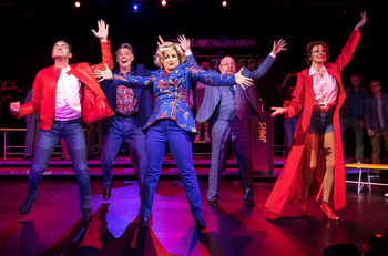 This is my third time at The Prom, beating my high school record of attending two proms. I thoroughly enjoyed them all: first, the Netflix movie version in December, 2020; second, the national touring company that played the Orpheum in Minneapolis just last April; and now Chanhassen's production, which I enjoyed best of all. Sure, starting out with a great dinner doesn't hurt, but more to the point, there's something about the Chanhassen experience, as thoroughly professional as it is, that creates a feeling of hugely talented and ambitious people deciding to get together and put on a show. It's a can-do, we made this ourselves vibe that embosses every one of its productions with positivity, not so unlike the positivity of young people working to create an enchanted evening they will never forget, their prom. The Prom is based on a true incident. In 2010, a student in a small-town Mississippi high school announced plans to attend her high school prom with her girlfriend and wear a tuxedo. She was barred from participating and when she challenged the school board, their response was to cancel prom altogether. That student, backed by the ACLU, sued the district. A federal court ruled in her favor, requiring the school district to reinstate the prom. This the district did, but only a handful of students attended; a parent group secretly organized a separate LGBT-free prom for the other students. When this gambit drew media attention, several pop celebrities, including the band Green Day, rallied in support of the student and sponsored a do-over prom that all students could attend, free of any homophobic backlash. The musical's book by Chad Beguelin (The Wedding Singer, Elf the Musical) and Bob Martin (The Drowsy Chaperone) maintains the determination and the tenderness of young love at the core of the story. However, they lather the book into a satire of the fabulous world of Broadway with hilarious results. The crew marching into town–moved from Mississippi to Indiana–to support the girl, here named Emma, are now a quartet of Broadway glitterati. They are not there out of compassion for Emma or commitment to social change. Fading stars Barry Glickman and Dee Dee Allen are there for publicity to rehab their reputations, and perennial chorine Angie Dickinson and pompous Juilliard graduate Trent Oliver, who is waiting tables while awaiting his big break on stage, are there to raise their profile. The team of Broadway invaders are hilarious, in particular in the hands of Jodi Carmeli as Dee Dee and Tod Petersen as Barry, who have the most time out front (as their swollen egos would demand) and the funniest material. Petersen can be accused of stealing the show, bursting with Barry's very-out persona erupting when a dream he never realized as a gay teenager comes true, "Barry Is Going to Prom." Dee Dee is an obtuse egotist, failing to understand why she shouldn't expect everyone's attention and adoration–isn't that the point of being a Broadway star? Carmeli flippantly embodies this narcissism and Dee Dee's slow, painful evolution into someone who could do a good deed out of sheer goodness, because, as she delivers in her signature belt, "The Lady's Improving." Upon her arrival in Indiana, although she can scarcely remember Emma's name, she asserts that "It's Not About Me," sung and danced to a sizzling flamenco by way of the Great White Way. Monty Hays is wonderful as Emma, summoning unusual depths of resolve while addled by the insecurities common to all teenagers. Hays beautifully delivers Emma's introductory number, "Just Breathe," and the romantic "Dance with You", ably joined by Maya Richardson (fresh from playing the lead in Chanhassen's Footloose) as Alyssa, the object of Emma's love. Hays sweetly renders Emma's painfully realized self-knowledge in "Unruly Heart," the pivotal song that lifts Emma's campaign out of their small Indiana town to become a viral dose of uplift across the nation. Shad Hanley gives a great performance as thwarted thespian Trent Oliver, whose years as a Juilliard student were his glory days. He helms two uproarious numbers, "The Acceptance Song" and "Love Thy Neighbor," with the backing of a non-Equity touring cast of Godspell–don't ask, but trust me, it's just one of the show's many delights. As Angie Dickinson, Helen Anker has the long, lithe body to be convincing as a twenty-year veteran of the ensemble in Chicago, bitter that she hasn't yet been given a shot at the lead, Roxie Hart. In her big solo, "Zazz," Anker channels the raspy voice and slithery moves of Gwen Verdon, the legendary star who originated the role of Roxie forty-eight years ago. JoeNathan Thomas is swell as a high school principal who harbors a secret love of Broadway musicals, in awe that iconic diva Dee Dee Allen is there in person, revealing his secret in the shyly sweet "We Look to You." Tiffany Cooper is an effective force as the show's villain, Mrs. Greene–Alyssa's disapproving mother and PTA president determined to block Emma's crusade and the influence she suspects Emma is having on her daughter. A hangdog Broadway producer traveling with the crew, Sheldon Saperstein, is a smaller role with no musical number of his own, but Jay Albright brings wit to the part. The ensemble is a force of combustible energy, dancing their fannies off, with featured dancers Laura Rudolph and Daysha Ramsey as the meanest of the high school girls, and Dylan Rugh and Mitchell Douglas as their boyfriends, deserving special notice. Chanhassen's long time–35 years!–Artistic Director Michael Brindisi is the guru who pulls all of these elements, the satire and campy comedy, the sweetness, songs, dances, and design elements, into a delicious parfait of entertainment and heart. Tamara Kangas Erickson's choreography makes great use of the show's talented ensemble, with seven–count 'em, seven–big dance numbers, plus the duet "Zazz," a lighthearted homage to Fosse. Design work is good on all counts