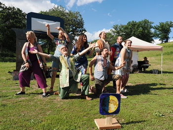 This year's edition, Romeo and Juliet, is not based on Romeo and Juliet by Charles Gounod, presented several times by Minnesota Opera, most recently in 2016. No, this Pickup Truck Operetta is based on the less well known I Capuleti e i Montecchi (The Capulets and the Montagues) by Italian composer Vincenzo Bellini with the original libretto by Felice Romani. For most of us, the title refers to the respective houses into which Romeo and Juliet are born, houses that are sworn enemies, dooming Romeo and Juliet to the fate of star-crossed lovers. In Bellini's rendition, the two camps are not different "houses," but warring political factions, which accounts for a narrative somewhat different than most theatre or opera goers are familiar with, and adds a smattering of relevance in terms of or current political landscape. Also, I Capuleti e i Montecchi begins with Romeo and Juliet having already met and in love with one another, so there is not a ballroom scene with its spellbound encounter between the two naïve strangers, nor a balcony scene in which Romeo and Juliet forswear their love in the most effusive terms. Further, when the play begins, Romeo has already killed Juliet's brother in battle, denying us a chance to witness Juliet confronting Romeo for this deed, only to have her love prove to be the stronger force. Nonetheless, this version of the story has an abundance of drama, conveyed by Bellini's luminous score and by selected pop songs associated with Fleetwood Mac, Fugees, Genesis, Lauryn Hill, and The Pixies. To put a contemporary twist on the characters, the adaptation devised by Denzil Belin, Scotty Reynolds, Gary Ruschman, and the Mixed Precipitation team has Romeo and Juliet heavy users of social media. Juliet is described as a "social media darling," certainly one who fancies herself an influencer. Romeo is called a virtual stunt sensation. The pair of lovebirds seem to get off on striking poses for one another's snaps, then looking approvingly at the results on their phone screens. Lorenzo, akin to Friar Lawrence in Shakespeare's version, is now Juliet's sympathetic life coach. Juliet's father Capellio is CEO of CapuletConglomerate.com, a media production firm, and Tabaldo is Capellio's "assistant associate producer," who is chosen by Capellio to be Juliet's bridegroom. Juliet's love for Romeo is a secret, known only to Lorenzo, who tries his best to help the two lovers sidestep Capellio's demand that she marry Tabaldo and to keep Romeo safe from Capellio's wish to avenge his son's death. Mixed Precipitation uses selected musical passages from the opera sung in the original language, in this case Italian, with no proscenium arch on which to project super-title translations. Instead, they have made a practice–or, more truly, an art–of finding clever ways to present translations to the audience. These can be such devices as props that unfold or drop down to reveal the translations, a cape or drapery that unfurls with words written upon it, or long scrolls that are unwound by a cast member or are set into a case of some sort and turned by a crank. In Romeo and Juliet, a large share of the translations are on such a scroll, installed in such a case. About a third of the way into the second act at the performance I attended, the scroll jammed and could no longer unwind. That left most of the lyrics untranslated for the duration of the show. I have full confidence this problem has been repaired for upcoming performances, but the remarkable thing is that, owing to the emotive power of the actors' voices, and a general familiarity with Romeo and Juliet, I was able to discern what the characters were saying through the music, even without understanding the words. I'd say that scores an extra "bravo!" The five principals in the cast all give winning performances. One of the unique features of Bellini's I Capuleti e i Montecchi is that the composer wrote the part of Romeo to be sung by a female, in a mezzo-soprano register. The Pickup Truck production retains that practice. With most of the parts double cast, it was Kara Morgan as Romeo at the opening performance, and she is truly marvelous, her voice crystalline and forceful, her acting persuasive, and her presence, whether in romantic scenes or in combat with her rival, is formidable. In "Ascolta!," Morgan sings with yearning of Rome's desire to sue for peace with the Capulets so that he and Juliet can be joined together, and in "Sì, fuggire," a duet with Juliet, Morgan conveys the urgency of Romeo's desire for Juliet to flee with him before it is too late. Corissa Bussian gives an outstanding performance, both in voice and in expressing the agonizing dilemma of feeling loyalty to her family, love for Romeo, and revulsion at the idea of a forced marriage to Tabaldo, movingly expressed in "Oh! quante volte" and also in "Sí, fuggire." Mark Billy is excellent as Lorenzo, extolling the worthiness of love above all else as he urges Romeo and Juliet to seize a chance to be together in "Ma rendi pur contento," and in his brave efforts to protect the two lovers from Capellio's wrath. As Capellio, Nick Miller conveys the malevolence that can arise out of partisanship, even at the expense of one's own child. Paul Coate, scheduled to appear in every performance, is terrific as Tabaldo, cultivating his vanity and scheming to rise up the power chain. Coates' voice is exquisite, triggering the opera's momentum with his plot to ruin Romeo in "È serbata a questo acciraro." Coates also plays guitar, contributing to the band's ebullient sound, which was ably led at the opening by Natalie McComas Gallacier, filling in for music director Gary Ruschman. The pop songs selected are well matched to the emotional tenor of the scenes in which they are placed. As examples, Genesis' "In the Cage" is a precise fit for expressing Juliet's trapped feelings, while Fugees' hip-hop "Ready or Not" grimly sets the tone for a flashback narration of Romeo's slayi