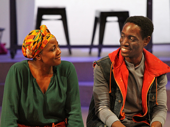 Anon(ymous) takes the premise of the hero Odysseus's journey back to Greece after securing victory in the Trojan War and changes its setting to the United States. A boy, Anon, in flight from an unnamed third world nation, becomes separated from his mother during a storm at sea, is washed ashore, and makes his way across time and the American landscape in search of home. He doesn't necessarily believe he will make it back to the homeland from which he and his mother fled, but he knows that he will feel the sense of being home when he gets there. When asked his name, Anon says that he is Nobody; if pressed, he comes up with a different name each time. As Odysseus was protected by Athena, Anon is aided by a god, in his case a super-chill god named Naja. Like Odysseus, Anon encounters a host of dangerous people and situations along the way, many of which mimic episodes and characters from The Odyssey. Among playwright Iizuka's most vivid creations are a maniacal one-eyed butcher who uses wine and cheese to subdue his victims, akin to the Cyclops, and Gabrielle, a seductress who, as Calypso did with Odysseus, uses her charms to keep Anon from pursuing his mission. Anon also meets people who help him, including Pascal, who for a while becomes Anon's travelling companion, and a blind café proprietor, his wife, and their daughter. In scenes that alternate with Anon's journey, his mother Nemasani is working in a factory with other immigrant women, bent over sewing machines. The factory manager is obsessed with her and asks her to marry him every day. She puts him off, saying she cannot marry until she completes the shroud she is sewing for her son, who she is certain has died at sea. Because he finds her name too difficult to pronounce, he calls her Penny–another nod to "The Odyssey," in which Ulysses' wife, named Penelope, waits for his return in Greece and stalls the suitors, aggressively pursuing her hand by working on a shroud for her lost, and presumed dead, husband. Most of the cast members play multiple roles, including as part of a chorus of refugees who create a context for Anon's journey, citing how things were "where I come from," the traditions they had to abandon, the dangers they faced in leaving, and the harrowing response to their arrival as strangers in a new land. Here the story parts from "The Odyssey," for where Odysseus was a singular heroic figure, Anon's plight and Nemasani's heartache are shown to be just two such stories among multitudes. Anon(ymous) was commissioned in Minnesota by Children's Theatre Company where it premiered in 2007 following workshops at the Kennedy Center in Washington D.C. and the Public Theater in New York. The play, aimed at an older youth audience than the majority of Children's Theatre Company's work, was a timely response to the need for thousands of youth and young adults in Twin Cities schools whose families fled from Laos, Somalia, Myanmar, El Salvador, Liberia, Iraq, and other cauldrons of chaos around the world, to see people like themselves depicted in stories, as well as to help youth fortunate enough to have not had these experiences as part of the recent history of their families develop empathy for their newly arriving neighbors and classmates. Since its premiere, Anon(ymous) has had near four hundred productions, most of those at high schools and colleges around the nation. That said, adults can also be well served by the play and its message, especially in a moment of backlash against refugees and asylum seekers striving for a safe haven and fresh start in life. Stephanie Lein Walseth, one of Full Circle Theatre Company's co-artistic directors, deftly directs this production, balancing engrossing storytelling with the delivery of important themes. She has worked with lighting designer Tom Mays and sound designer Quinci Bachman to create frequent sequences that evoke the terror of living in a war zone. Fight director Annie Enneking and assistant fight director Mason Tyer make strong contributions, including a tense duel with foreboding curved bolos. Mina Kinukawa (whose elegant work seems to be everywhere this season) has designed a simple but effective set with bolts of cloth that can evoke a churning sea or torrent of wind, a raised platform to distinguish locations, and a large, mobile box that can become the top of a freight train car, a tunnel for escaping from, a dumpster for hiding among the rats, and other settings. Abby Vaughan's costumes bring yet another stroke of wit to the production. Dominique Jones warms our heart as Anon. Anon has the most time center-stage, and Jones conveys the indefatigable hope and grit of our young hero while also displaying the lithe agility a person in his circumstances needs to escape close calls. Charla Marie Bailey wins us over as Nemasani, grieving for her son while maintaining the wits needed to put off her unwelcome suitor. As the god Naja, Ninchai Nok-Chiclana has a lightness that sometimes feels at odds with the difficulties Anon faces, but her good cheer and constant grace do serve to bolster Anon when his spirits flag. Also, they may offer assurance to the audience that there is hope for a happy outcome–perhaps a good move for the youthful audiences that first saw Anon(ymous). Strong impressions are also made by Gabrielle Jones as the Calypso-like Calista, James L. Almen as the blind café keeper Ali, Yuri Mackus as Nemasani's lecherous supervisor, Edwin Strout as the monstrous one-eyed butcher Zyclo, Christopher Collier as Pascal, and Wini Froelich, both as the well-intended but clueless wife of a senator and as Zyclo's exotic and conspiratorial pet bird. I stress again that Anon(ymous) is a play for all ages, adults included, though young children may be frightened by scenes that simulate the explosive lights and sounds of war. Full Circle, with a mission to tell stories of those on the edges of society, has wisely recognized the urgency of bringing Anon and Nemasani's story to