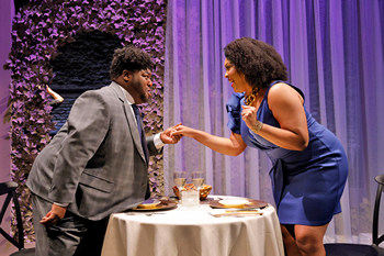 Weiss' score for Service Provider works perfectly as a melodically lilting frame to carry de los Santos' libretto, though without offering any memorable themes. The music never distracts from the libretto, and here the story is everything, with its arch critique of our addiction to electronic devices, and the damage that addiction causes. There is also a hilarious jab at overly precious restaurant servers who recite the daily bill of fare to diners with the flourish of one describing the achievements of a Nobel laureate. Zoie Reams has lead roles in both operas and gives phenomenal performances in both, not only vocally, with a clear soprano, but in portraying two vastly different characters: one an emotionally isolated housewife, the other an independent but device-addicted modern woman. One suffers from a lack of communication, the other drowning in too much of it. Charles H. Eaton brings a beautiful, deep voice to his performance as Sam, the male lead in Trouble in Tahiti. Eaton sings with great authority, most notably when describing himself as a man born to be a winner, a powerful segment of Bernstein's score. Eaton shows Sam gloating and overly impressed with himself at the office and the gym, but at a loss for how to conduct himself in his marriage. Jeremiah Sanders is part of the Jazz Trio in Trouble in Tahiti. As Beau, the flustered husband–and philanderer–in Service Provider, he skillfully handles vocal duties with his robust voice, while showing a flare for the libretto's comedy. Efrain Corralejo, also in the Jazz Trio, is sublime as Dallas, the Service Provider waiter, delivering his lines with just the right tone of officiousness. Keely Futterer, the third Jazz Trio member, ably sings the role of Charlene, Beau's spurned mistress, blending determination with bawdiness to flesh out her character. Christopher Weiss conducts the Minnesota Opera Orchestra, which plays beautifully and has a full sound that seems to benefit from the acoustics provided by Luminary Arts' historic stone walls. Benjamin Olson's scenic design makes ingenious use of hanging panels that slide back and forth to create a suburban home, an executive office, a gym, and the outdoor seating area of a posh restaurant. Amber Brown's costumes are delightful–especially when they are reversed to create a south seas image–and Kathy Maxwell's lighting works well in tandem with the scenic design to highlight action and mood. The two operas' unifying themes of communications (the agony of spouses unable to communicate their needs or feelings, and the abuse we suffer at the hand of digital devices that prompt us to ignore the actual human beings in our presence) ring true as messages worth absorbing, and both are expressed through smartly written and composed pieces, delivered by an outstanding cast in a stylish production. I have learned my lesson, and never again will expect less than excellence from any program mounted by Minnesota Opera, no matter how short or long it may be. Trouble in Tahiti and Service Provider run through March 23, 2024, presented by Minnesota Opera at the Luminary Arts Center, 700 North First Street, Minneapolis MN. For tickets and information, please call 612-333-6699 or visit www.mnopera.org. Trouble in Tahiti: Music and Libretto by Leonard Bernstein; Service Provider: Music by Christopher Weiss, Libretto by John de los Santos; Conductor: Joseph Li; Stage Director and Choreographer: Kyle Weiler; Scenic Design: Benjamin Olsen; Costume Design: Amber Brown; Lighting Design: Kathy Maxwell; Wig, Hair and Make-Up Design: Emma Gustafson; Intimacy Director: Alessandra Bongiardina; Head of Music and Assistant Conductor: Mario Antonio Marra; Principal Coach and Chorus Director: Celeste Marie Johnson; Répétiteur: Erica Guo; Assistant Stage Director: Margaret Jumonville; Production Stage Manager: Patricia Garvey. Cast: Trouble in Tahiti: Efrain Corralejo (Jazz Trio), Charles H. Eaton (Sam), Keely Futterer (Jazz Trio), Zoie Reams (Dinah), Jeremiah Sanders (Jazz Trio). Service Provider: Efrain Corralejo (Dallas), Keely Futterer (Charlotte), Zoie Reams (Autumn), Jeremiah Sanders (Beau). |