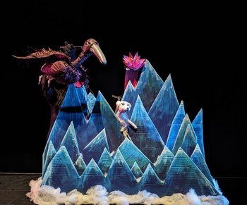 To say that Heart of the Beast's medium is puppetry is to understate the depth and range of what they do. The puppets and masks they create and through which they tell stories that, most often, deal with humanity's place in a much larger universe, are powerful in the intensity of their image and expression, yet delicate in their nuanced details. Some are larger than a grown adult, others can fit on the palm of that adult's hand. Those puppets take a great many forms, including puppets on strings, gloved hand puppets, puppets mounted on sticks or operated with rods, shadow puppets, and the form most often used in Phantom Loss, tabletop puppets. Tabletop puppetry is a European variation of a form of Japanese puppetry called Bunraku. In Bunraku, the operators of the puppets are visible and generally hold the puppet in front of them at about waist height. There is close contact between the puppet and its operator, who controls the puppets with iron rods. Tabletop puppets generally are smaller, often no more than a foot high, and instead of iron rods, operators often control the puppets with direct manual manipulation. The puppets are usually fully articulated, with joints that can bend and turn, for example, bending their knees for them to climb stairs or turning their head to indicate a nod. Often it takes two operators to carry out the movements and gestures of a single puppet. The shows are presented atop a platform that is about the height of a table, hence the name. Tabletop puppets are used for all of the main characters in Phantom Loss. The play was written by Oanh Vu, a second generation Vietnamese American whose parents fled Vietnam in 1982, leaving some of their children (Oanh Vu's siblings) behind. It would be a full decade before the family was reunited. Oanh Vu based her play on the sense of loss and helplessness of those experiences. Two girls form the heart of Phantom Loss. One lives with her grandmother above the nail salon that provides their livelihood. The grandmother works herself to the bone, believing that is what survival requires, but the girl–who has the appearance of a 1990's era punk–doesn't see the value in this, and sets out seeking meaning for her life, ignoring her grandmother's protests. She is befriended by a ghost, inhabiting the body of a dog, called Mr. Chicken. Mr. Chicken is a comical character, but he also dispenses encouragement and wisdom. He also turns out to be far more than he first appears. The second girl lives in a dilapidated house with its windows boarded up, and her own appearance is similarly disheveled. She is grieving and unable to leave the house where she waits for her long absent father to reappear. The first girl and Mr. Chicken offer her solace and encouragement to move on with life. There is also a great bird in the story who, according to Mr. Chicken, feeds on resentments and regrets. Both of the girls are subject to this bird's appetite. How the story unwinds is not always clear. To be honest, the artistry of the creation and enactment of these appealing characters is totally captivating, the narrative not as much. It seems like the characters know what is happening, even if they don't understand life's underlying mysteries, but that there are gaps going from one situation to another that leave the audience (at least this audience member) puzzled. Fortunately, there are frequent enough touch points where the narrative is clarified to allow viewers to regain their bearings, and the general arc of the story and its optimistic resolution are clear enough. The four puppeteers who operate the puppets are Sofia Padilla, Tri Vo, Andrew Young, and playwright Oanh Vu. They often switch off in pairs to manipulate the puppets, especially to negotiate complicated actions, such as picking up and holding onto a book. All four exhibit a mastery of their media, operating their charges with nuance and grace. The puppeteers also lend their voices to the characters, giving each a distinctive sound and attitude. As the director of Phantom Loss, Kurt Hunter has ably orchestrated the pairings and reshuffling of puppeteers, and guided the expressiveness of each character's voice. The puppets are beautiful objects that, moreover, carry a depth of expression, fabricated by Vu and Young, with support from Hunter. Karly Gesine Bergmann has conceived apt costumes that adorn the puppets. In addition to tabletop puppets, shadow puppets, cleverly fabricated by Leyen Trang and Young, are used intermittently during the play. Two evocative set pieces are dominant, the nail salon and the boarded-up house, but there are other inventive settings, including a foreboding mountain range, all designed by Steve Ackerman and Orren Fen. Heidi Eckwall's lighting design, Mike Hallenbeck's sound design, and music composed by Charles McCarron complete the suite of elements that contribute to an artistically fantastic whole. Even with a narrative that left me scratching my head on a number of occasions, Phantom Loss had me consistently engaged by the appearance and operation of these puppet-characters, and the remarkable design work surrounding them. Too, the overall sense of loss and disorientation attributed to wartime separation and being a new arrival in a strange land clearly comes across. The play also leaves room for humor, a lot of it courtesy of Mr. Chicken, that provides a balance to the seriousness of the plight both girls face. There are ample reasons to see Phantom Loss and to feast in the creativity, craftsmanship, skilled performances, and socially forward messages delivered by this team of artists. Here's to another fifty years of evocative storytelling by Heart of the Beast. Phantom Loss, produced by In the Heart of the Beast Puppet and Mask Theatre, runs through April 7, 2024, at the Avalon Theater, 1500 Lake Street E., Minneapolis MN. For tickets and information, please visit www.hobt.org. Playwright: Oanh Vu; Director: Kurt Hunter; Table Puppet Fabricators