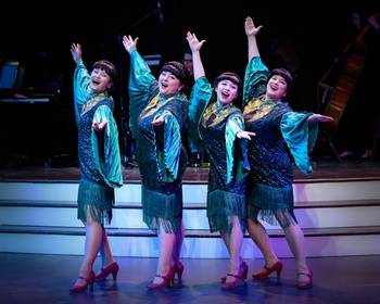 The chop suey circuit refers to a network of Asian-American performers who toured the country in the 1930s through the 1950s, playing at nightclubs usually located on the edge of the Chinatown districts of larger cities. The audiences for these shows were primarily white, eager to experience the exotic "oriental" experience offered by these settings and performers, but not to venture into the heart of immigrant communities. Most of the shows featured popular songs of the day and currently popular dance steps. What was "oriental" was the faces of the performers. Among the performers, many bore sobriquets comparing them to popular American–that is, white American–stars. Thus, Dorothy Toy and Paul Wing were billed as the Chinese Fred Astaire and Ginger Rogers (even though Toy was of Japanese descent). There was a Chinese Frank Sinatra (in whiteface) who performed with a Chinese Sammy Davis (in blackface), and numerous others. Among them were the "Chinese Andrew Sisters"–otherwise known as the Kim Loo Sisters: Jenée, Sophie, Maggie, and Bubbles. Playwright Jessica Huang wrote both book and lyrics for Blended Harmony, which does a good job of distinguishing the four sisters from one another. Huang takes a segment of their lives that was the heyday of their careers, from their move off the chop suey circuit and into mainstream venues and even a couple of Hollywood movies, through the winding down of their act. It is in some ways a typical backstage story, with an aggressive stage mother–in this case, a Polish immigrant, Lena, who married their Chinese father, Louie Shear Gim. Lena, burning with relentless ambition, saw her musically talented children as an escape from life as a laundress in Minneapolis. She created the act, the name (Kim Loo being a reworking of their father's name), and took to the road, daughters in tow. Papa stayed back, working in the kitchen at Nankin, a notable Chinese restaurant that graced downtown Minneapolis for many decades. The show begins in New York, with the Kim Loo Sisters auditioning for a spot on Broadway in the 1938 edition of George White's Scandals. These were a series of vaudeville-style shows that mirrored the better known Ziegfeld Follies. Huang assigns George White an ongoing role in the narrative, and does the same for entertainer Ann Miller, then a rising starlet of sixteen who'd already made a few movies before nabbing a featured spot in the Scandals, with the Kim Loo Sisters relegated to being her back-up singers. The Kim Loos go on to tour with the show, their composition changing as one sister veers off in another direction. Lena's ambition keeps her from returning home to her husband in Minnesota, even as the girls become women and no longer need her protection. World War II provides another twist in the Kim Loo Sisters' trajectory. The story even includes the political upheavals in China as Chiang Kai-shek's nationalists fight against Mao Tse Tung's red army. You could almost call it a saga. Huang's book does a good job of bringing these episodes in the Kim Loo sisters' journeys to the stage, provides clear transitions from one to the next. The inclusion of George White and Ann Miller feels a bit shoe-horned in, though they do make for engaging characters who get to deliver entertaining musical numbers, White in duets drawn from contract negotiations with the shrewd Lena, Miller in big numbers that allow for the frisky dance routines that became Ann Miller's calling card. Jacinth Greywoode provides a likeable score, drawing on the sounds of big bands, swing music, mid-century pop, specialty turns, one torch song, and one full-out love song, lightly embroidered with Chinese harmonics. The four actors in the roles of the Kim Loos are all swell and come close to recreating the close-harmony style favored by sister acts of yore. Of the four, Audrey Mojica, who plays Bubbles, gives a break-out performance. Bubbles is the youngest sister, flirtatious beyond her years (and does that ever come across in the number "Worship Me"), constantly seeking the spotlight–she agrees to follow her older sister's choreography if she can stand in front–and also longing for friendship and for her absent father's company. I have been increasingly impressed watching Mojica develop as a young actor with the Children's Theatre Company over the past ten years with leads in shows such as Annie and Alice in Wonderland. Here she is an ingenue role, awash with talent, brimming with confidence, and ready for whatever lies ahead. Kelsey Angel Baehrens plays Jenée, the next oldest of the sisters and the only one who feels out of place performing on stage. She feels demeaned by their act's faux orientalism, misses her father terribly, and, unlike her sisters, has no interest in stage door Johnnies. When she does connect with a young man, it is a meaningful, life-changing moment. Baehrens acts, sings and moves beautifully. She expresses Jenée's disillusionment in "The Ones in the Dark," performs a sublimely graceful solo dance while "Gold" is sung by the young man of her dreams, and shows her mettle against her intimidating father-in-law in "Battle Song." Suzie Juul gives sister Sophie–the oldest, who dates band members behind her mother's back–a flare for comedy, while Morgan Kemper as second sister Maggie conveys her nature as the one who aims to bring order among the four girls when things get off track. Ann Michels is marvelous as Lena, a stage mother who would give Madame Rose a run for her money, sharp-edged in her deal-making with George White, and wistfully determined in choosing to find fulfillment in work over marriage. Ariel Estrada is excellent playing both Papa and Jenée's father-in-law, General Li, using his beautiful voice to good effect in two quite different roles, one conveying sweet longing, the other harsh authority. Ethan Yaheen-Moy Chan brings great charm, a gorgeous voice, and handsome looks as Youlin, the man who offers authenticity and 