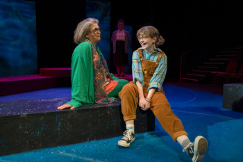 Blessing wrote Eleemosynary in 1985 as a commission from St. Paul's Park Square Theater, and it has been widely performed since. Currently, it is the inaugural production being mounted by a brand-new theater company in the Twin Cities, called Spacetime Theatre. With three terrific performances and perceptive directorial attention from Christopher Kehoe, Spacetime's founder and executive artistic director, this brash start up–their tag line reads "Just a little Twin Cities theatre company with some galaxy sized dreams"–has taken flight with a hit. At the onset of Eleemosynary, Echo has attained glory as the spelling champion, but she is keeping vigil over her adored grandmother, Dorothea, who lies silently in a hospital room after suffering a stroke. The play is unspooled in a series of flashbacks which Blessing has deftly ordered and scripted so that in due time the unruly-shaped puzzle pieces form a coherent picture. The snippets we see in each scene are, in the main, very funny bits, prompting an abundance of laughter, so it takes us by surprise when we begin to understand how moving the truth of the narrative has become. Times being what they were, Dorothea was thwarted in her ambitions of becoming a researcher and scholar, but finds a marvelous way around mid-twentieth century gender norms: eccentricity! She is awakened to the fact that one who is labeled an "eccentric" can get away with anything, including fool's errand projects, like insisting that her daughter Artie (from her given name, Artemis) can actually fly using fabricated wings fastened with straps to each arm, and humiliating Artie with repeated public demonstrations which, of course, never get off the ground. Her mother's eccentricities and the resulting humiliation, as well as Dorothea's exercise of control over every aspect of her daughter's life, prompts Artie to seek a separation from her mother and embark on a life apart. However, when Dorothea learns that Artie is pregnant and that there is a third generation of Westbrook women, she bounds back into Artie's life to assume full control over her granddaughter, Echo, driving a wedge between the mother and child. Competing in the spelling bee is actually Artie's idea, as a bridge by which she and her daughter can have contact through Echo's love of words. Intermingled with Dorothea's eccentricities are a great many points of wisdom and even a kind of logic, albeit logic that is always configured to prove her point. For example, Echo asks her grandmother about Artie's inability to deal with change, and Dorothea tells her that Artie has never been able to accept the breaking of life's rules. When Echo responds, "and you like to break rules!" Dorothea insists that she is not a rule breaker, only that she is following rules that haven't yet been discovered. The dynamics among the three generations of Westbrook women bring to the fore questions about what we must do to pursue our dreams, how those dreams connect to the dreams of the generations before and after us, and recognizing the hazy line between encouraging someone to reach their potential and pushing them toward your unrealized goals. It dives into the question of the part love plays in mediating these issues, as well as the tension that can arise between inheritance and free will. Blessing gives us a lot to think about, and director Christopher Kehoe draws out all of these unsettling questions without ever sacrificing the play's rich humor. I had not seen the actor Katie Tuminelly, who plays Dorothea, before. The program states that she recently returned to the Twin Cities after many years away, and I do hope she plans to stay. Tuminelly is fully persuasive as her Dorothea charges headlong into the decision to live life as an eccentric, free of shame or embarrassment, spouting forth her circular arguments, and the unshakable belief that in foisting these upon first her daughter, and later her granddaughter, she is enriching their lives. Tuminelly conveys how impossible it would be to live with someone of Dorothy's temperament while making her an appealing character, and she delivers the numerous laugh lines with aplomb. August Chaffin, playing Echo, exhibits a tremendous range of emotions. We see her delight in her grandmother's company (even as an infant), become a fierce, downright vicious competitor during the spelling bee, turn to brutal accusation toward her mother's life-long distance, and reveal a wounded yearning to establish closeness based on genuine feelings and not on achievements. Chaffin is very, very good. As Artie, Tara Borman has the difficult role of being a terse, tightly wound character ricocheting off the engaging energy fields of her mother and daughter. Borman persuasively reveals the pain that outpouring of energy inflicts upon her, the wounds she suffers, and the walls she has erected to prevent further damage to her psyche. All three of these actors convey both the bonds and the antagonisms of their fractured family. The setting by M Curtis Grittner is appropriately spare, as called for in the playwrights instructions, providing spaces that serve as different corners of the characters' memories. Costume designer Jaclyn Mack has given each of these Westbrook women a very distinct look, and appears to have had a field day in creating a costume for Dorothea that seems to announce her eccentricity. Kurt Jung's lighting design provides varying shades and focal points that add immensely to the texture of each scene, and August Chaffin not only gives a great performance, but created the production's effective sound design. While eleemosynary may have been a randomly chosen winning word for the National Spelling Bee as imagined by Blessing, I'd give better than even odds that his choice has something to say about healing the generational blisters of unmet expectations, imposed agendas, escape and abandonment. Eleemosynary means related to charity and to the giving of alms. Will these mentally 