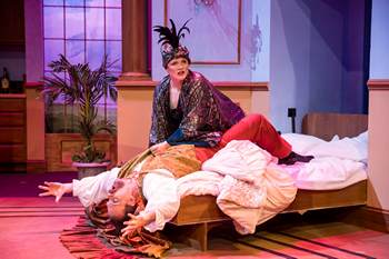 In his director's note, Byrd shares his concept of this production as a "surprise cake" that Man in Chair cuts open to reveal The Drowsy Chaperone as the colorful candy inside. Scenic designer M. Curtis Grittner's design presents Man in Chair's modern apartment with an authentic modern kitchen and some musical theatre fan touches. The design allows characters and set pieces to emerge from surprising places, most playfully when Erin Lorentz as the Drowsy Chaperone appears lounging in a Murphy bed that pops out of the apartment wall. Costume designer Kathy Kohl embraces Byrd's concept with bold costume silhouettes gorgeously evoking the 1920s musicals The Drowsy Chaperone parodies. The most successful performances are those that embrace the stylized humor demanded by the material. Keri Hommez, using a high nasal voice and blissfully blank facial expressions, is pure 1920s "dumb Dora" as would-be Follies performer Kitty. As Aldolpho, the "misguided Don Juan," whom Man in Chair tells us is a former silent film star, James Lane skillfully sells his dramatic cape flips and fully commits to his flamenco inspired number, "I Am Aldolpho." Jeremy Johnson brings vaudeville level specificity of movement, crisp articulation, and strident vocals to his role as Gangster #2. Vocally, Lorentz shines on the delightful anthem, "As We Stumble Along," demonstrating vocal agility and a relaxed and open resonance befitting the "drowsy" (drunken) chaperone. The ensemble vocals on the energetic number "Toledo Surprise" are a standout, with their impressive range and dynamics. Molly McGuire's upper register rings out and she fully embraces the overdramatic physicality of starlet Janet Van De Graaff in her late number, "Bride's Lament." The Drowsy Chaperone is performed in the John H. Potter Theater of The Phipps, an intimate-feeling proscenium theater enhanced by the balanced sound design by JJ Gisselquist. The biggest laughs in this comedy come from the cast's game participation as performers on Man in Chair's record, such as when the record skips or pauses. Comedy stemming from skewering the conventions of Cole Porter-style 1920s musicals is more difficult to achieve, a challenge inherent to this musical. The Drowsy Chaperone runs through September 29, 2024, at The Phipps Center for the Arts, John H. Potter Theater, 109 Locust St., Hudson WI. For tickets and information, please visit thephipps.org or call 715-386-2305. |