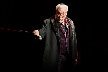 In his current project, which he created and performs, Page truly leans into the concept of the villain, bringing to life nine of the greatest villains ever created for the theatre. That they are all great roles can be easily understood when I tell you that they are all characters created by William Shakespeare. The result, created and performed by Page, is called All the Devils Are Here, with the intriguing subtitle: How Shakespeare Invented the Villain. After an acclaimed, award-winning Off-Broadway run last season, Page is taking the show on a limited tour and has made the Guthrie Theater his first stop. Of course, Page doesn't reenact the entirety of each of the nine villain roles; he draws out a selected speech or two from each of their plays, in all cases a pithy bit of dialogue that sheds light on their villainous nature, and moreover, on the evolution of the villain as conceived by Shakespeare. He presents the villain and the play in which they appear in the order Shakespeare wrote them, thus embarking on a chronological tour of villainy. Between those enactments, Page regales us with tales of Shakespeare's overall development as a playwright, placing each new drama within the context of its creator's personal journey, as well as sharing tidbits from his own remarkable repertoire of performances, which includes playing many of these roles in full productions. Did Shakespeare actually invent the villain? Yes and no. There were, to be sure, evil characters and characters who committed evil deeds before Shakespeare. What Page sets out to demonstrate, though, is that the notion of the villain as simply a bad person–cut and dried, no rhyme or reason needed–was pretty standard fare before Shakespeare got his hands on them. Page briefly takes the part of one of the "vices" from a morality play like those that were typical fare in small towns such as Shakespeare's Stratford-on-Avon. These "vices" were not people, but character flaws like greed, lust, duplicity or jealousy, depicted by masked actors as the instigators of the characters' immoral choices. Thus, the vice and not the character infected by the vice, is the villain. But starting early on in his career with Richard III, Shakespeare's villains have evil impulses that are spurred as a response to their own suffering–for Richard III, being born with deformities, for Aaron the Moor in Titus Andronicus, being born a Black man, for Shylock in The Merchant of Venice, being born a Jew. Page follows those three with six more excellent and terrible villains: Claudius (Hamlet), Angelo (Measure for Measure), Iago (Othello), Edmund (King Lear), and both Macbeth and Lady Macbeth from the Scottish play. Page gives Iago an elaborate presentation, making a case that he fits our contemporary profile of a psychopath. He performs a complete scene, taking the parts both of Iago and Othello, with such a balance of nuance and ferocity that I immediately began wishing to see Page in a full production of the play, and if his stamina would hold up, playing both parts for its entirety. The final character brought to the stage is Prospero, the wizard from The Tempest, the last play Shakespeare wrote without a co-playwright–and also the play from which Page took his show's title. Prospero has the makings of a villain–the abuse he suffered, before the play opens, at the hand of his brother gives him cause, and his mastery of magic provides the tools for inflicting great harm. Indeed, he has inflicted harm. By the play's end, though, Prospero grants forgiveness to his abusers and forswears the further use of magic. A man, thus, may not be predestined to be evil but has the capacity to chose whether or not to follow that course. What does that tell us about the villains in our midst? Page's performance in every one of the selected excerpts is astonishing, while his banter in between those segments is braced with a clear sense of authority over the scholarship behind the show's premise, along with wit and a tart slice of self-deprecating charm. His performances have received splendid support from Emily Rebholz' costume designs: what at first appears to be everyday streetwear lends itself to a dozen variations that embroider each characterization. Stacey Derosier's lighting provides wondrous alterations of temperament throughout the show, and Darron L. West's sound design creates an unseen context for the dramatizations, with creaky doors, rattling chains, storm clouds, chimes, and a threatening, steady thrum taking turns to enliven the scenes. Simon Godwin directs this production, and has done so since All the Devils Are Here was first produced as a filmed performance, presented online in 2021, the days of COVID lockdown, by Shakespeare Theatre Company in Washington D.C. Twin Cities audiences are immensely fortunate to have the opportunity to see this wonderful creation, which is equal parts enlightenment and entertainment, devised and performed by a gifted actor. You don't have to know much about Shakespeare, his plays, or the villains under scrutiny, as Page provide a set-up for each segment, and his deep, clarion voice ensures you can hear every word. Though we are only in the second month of the 2024-2025 theater season, I feel confident that at season's end, All the Devils Are Here will be atop many "best of the season" lists, including mine. All the Devils Are Here runs through November 17, 2024, at Guthrie Theater, McGuire Proscenium Stage, 618 South 2nd Street, Minneapolis MN. For tickets and information, please call 612-377-2224 or visit GuthrieTheater.org. For information on the tour, visit www.allthedevilsplay.com. Creator: Patrick Page; Director: Simon Goodwin; Scenic Designer: Arnulfo Maldonado; Costume Consultant: Emily Rebholz; Lighting Designer: Stacey Derosier; Sound Designer: Darron L. West; Associate Scenic Designer: Joe Burt; Associate Lighting Designer: Christopher Wong; Associate Sound Designer: Ryan Matthew Hall; Tour Production