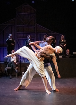 Black Nativity has been performed (or is the verb "celebrated" more fitting?) at Penumbra's St. Paul playhouse for thirty-two Christmas seasons, beginning in 1987. That is a mighty run, though bested by Boston where the show has been an annual event every holiday season since 1970. A cursory examination online indicates other productions of Black Nativity this season in Seattle, Portland (OR), San Diego, Dallas, Miami, Milwaukee, Cleveland, and Baltimore. No doubt there are many others as well. It was first presented in 1961 when the founders of Cleveland's Karamu House–the United States' oldest producing Black theatre company, founded in 1915–commissioned Hughes to create the work, and it premiered in an Off-Broadway production. It is easy to understand the show's staying power and wide-spread appeal, given that racial inequities and the hunger for inspiration to work toward a better, more just place for all are still very much with us. Over the years, Penumbra's productions of Black Nativity have been revised in different ways. At one time it was set just after the Emancipation Proclamation, and its narrative was of formerly enslaved people heading north, celebrating their first Christmas as free men and women in a barn in Joplin, Missouri (Langston Hughes' birthplace). A later adaptation placed the story in the context of a family reunion, drawing family members together across their differences. Common to every rendition, though, has been the story of Joseph, Mary, and their infant Jesus, a babe born in possession of great majesty despite the lowly circumstances of his nativity. The other common element has been glorious music, drawing on Christmas carols and gospel hymns, including some based in African American experience. Penumbra's current production places Black Nativity in a simplified concert format, as it has for the past several years. It is again directed by Lou Bellamy, founder and artistic director emeritus of Penumbra, who has shepherded Black Nativity since it was first mounted at Penumbra. The show is primarily told through songs, delivered with bountiful spirit by a choir of five voices, directed by Angela Stewart, and two immensely talented soloists, Greta Oglesby and Dennis Spears, who inserts, on a couple of occasions, jubilant dance steps into the mix. Oglesby and Spears are both veterans of the Black Nativity family, as is choir member Deborah M. Finney, who steps out as a soloist–brilliantly–and joins with Oglesby, Spears and Stewart as a quartet on a couple of numbers. Every song is a stand-out, but I was especially moved by Spear's crystalline "I Wonder As I Wander" and by Oglesby's impassioned "Mary Had a Baby." Stewart delivers a soaring solo of "O, Holy Night," with the first verse a low purr reminiscent of the great Cape Verdean singer Cesaria Evora, then switching up to a high-pitched belt, displaying the carol's–and its message's–remarkable breadth. Penumbra company member Jennifer Whitlock presents the spare narration that serves as a bridge between the musical numbers. When the story focuses on Mary and Joseph, dancers Hassan Ingraham and MerSadies McCoy enter, gracefully enacting the couple's struggles, yearning, and ultimately, joy, as envisioned by Marciano Silvia Dos Santos' passionate choreography. Sanford Moore returns as music director and pianist, along with keyboardist Lee Gatlin, percussionist Steve Jennings, guitarist Geoff LeCrone, and bassist Jay Young III. They produce wonderful music that shifts smoothly from blues to gospel to traditional carols. The other choir members, too, deserve to be named: Shirley Marie Graham, Mckenna McCormick, Angela Henderson, and Christina Brooks. One and all shine. Though uncredited in the program, the scenic design, suggesting the rustic wood structure of a stable, looks much the same as what I remember from my last visit to Black Nativity three years ago, designed by Lance Brockman. Gregory Horton's costume designs present the dancers, representing Joseph and Mary, in loose-fitting, humble earth tones, while the singers and narrator are resplendent in black evening wear. Kathy Maxwell's lighting design moderates the spectrum between sorrow and jubilation, and Scott Edwards' sound design provides an ideal balance between the voices and the band. If you share in the message of Christian faith embedded in the birth and life of Jesus, the core around which the whole enterprise Christmas has become, you will undoubtedly relish the passion and artistry devoted to delivering that message in Black Nativity. As I have a different faith background, I may not fully appreciate Black Nativity on that level, yet I can understand its message on a more universal scale, one that puts faith in the human capacity to act out of kindness and compassion, to pursue equity and justice, and to move from darkness toward the light. Moreover, anyone would be hard pressed to find more energized, heartfelt, beautifully sung and played music in the Twin Cities this holiday season. Black Nativity runs through December 22, 2024, at Penumbra Theatre, 270 North Kent Street, Saint Paul MN. For tickets and information, please visit www.penumbratheatre.org or call 651-224-3180 . Created by: Langston Hughes; Director: Lou Bellamy; Musical Director: Sanford Moore; Choreographer: Marciano Silva Dos Santos; Sound Designer: Scott Edwards; Lighting Designer: Kathy Maxwell; Associate Lighting Designer: Ellie Simonett; Costume Designer: Gregory Horton: Stage Manager: Megan West; Stage Manager Consultant: Mary Winchell; Assistant Stage Manager: Alexis Wilcox. Cast: Hassan Ingraham (dancer), MerSadies McCoy (Dancer), Greta Oglesby (soloist), Dennis Spears (soloist), Angela Stewart (choir director/soloist), Jennifer Whitlock (narrator). Choir: Christina Brooks, Deborah M. Finney, Shirley Marie Graham, Angela Henderson, McKenna McCormick. Musicians: Lee Gatlin (keyboard), Steve Jennings (percussion), Geoff LeCrone (guitar), Sanford Moore (pia
