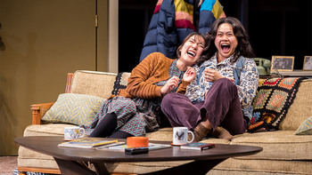 That is one of the feelings I had after seeing The Heart Sellers by Lloyd Suh (The Chinese Lady), playing on the Guthrie Theater's McGuire Proscenium Stage in a production that originated at Boston's Huntington Theatre Company. Another feeling was admiration for the playwright's ability to weave together multiple themes: immigration and assimilation; the status of women's roles in 1973; and the tendrils of need, attraction, and curiosity that twine together in the formation of a friendship. I also felt the pleasure in my midsection that was the result of ninety minutes of hearty laughter. And there is the feeling of elation at watching two actors, Jenna Agbayani and Juyeon Song, giving performances so utterly convincing, it feels more like having been eavesdropping on an actual encounter between two women who have only just met, than watching a scripted play. Even before any of that, The Heart Sellers had my jaw dropping as soon as I took my seat in the McGuire and looked up at Wilson Chin's incredible set. The rear of the stage is fully concealed by the wall of an apartment building, circa late 1960s, a honeycomb of windows and glass doors leading to skimpy terraces, all close enough together to know the homes behind this wall are small and humble, and their residents most likely working class. The limp look of drapes hanging in the windows and knocked-up grills on the window-unit air conditioners attest to this. A few of the units show something about the residents within: one sports an American flag, and one has a Santa figure on the terrace. It's Thanksgiving, so no doubt more terraces will be populated by Santas, snowmen, reindeer, shepherds, wisemen, and the like in the coming days. Occupying the stage floor in front of this edifice wall is the particular apartment (living room, kitchen and bedroom) of a Filipino couple, Luna (Agbayani) and her husband, a medical resident at a hospital in this small, unnamed city. The furnishings look comfortable but inexpensive, cluttered, and bear the style of the era, down to avocado green kitchen cabinets. The interior of this apartment confirms the expectations created by the exterior view of the many apartments on that rear wall. As the play begins, Luna is entering her apartment from the street, accompanied by Jane (Song), the Korean wife of a Korean medical resident. Luna and Jane have just met, at least formally, at the supermarket. They had spotted each other before but never spoken. Up to this point, it is not clear that Jane has yet spoken at all, as Luna does all the talking, a rant of laughter and chatter, including her supposition that Jane must think she is goofy for inviting a stranger to her home, but then, since Jane acquiesced, they must both be goofy. Luna is beside herself to have company, the first visitor to her home, other than the landlord and the plumber, as she hastens to add, "Yes, we needed a plumber, but it's fixed." Luna's English is pretty good, but not good enough make up for her standing out from American women, and feeling desperately isolated while her husband works long days at the hospital. Jane stands at the door for a while, nervous about proceeding with this encounter, but eventually, Luna steers her guest inside. We have already noticed that they are wearing identical coats–parkas with bold color blocks. Luna bought hers at Kmart and is thrilled to learn that Jane also bought her coat at the same store. A second common thread, the first being that both are Asian women, without friends in a strange land, alone while their husbands work on Thanksgiving because, after all, it is not their holiday so they won't mind working. Luna exclaims that maybe their husbands will meet and become best friends, to which Jane says, "Maybe. (beat) But probably not." Luna has purchased a turkey to celebrate Thanksgiving like the Americans, but she doesn't know how to cook a turkey. Jane does, the result of watching Julia Child (Jane watches television to fill her lonely hours) and thus is put in charge of the turkey, which she is alarmed to discover, is frozen. Noting her alarm, Luna asks Jane if it will be okay and, after a meaningful pause, Jane replies, "It's okay, we just cook more longer." Jane's English is not as good as Luna's, but her insights are just as sharp. In time, and with the aid of wine, they discover more commonalties, some they already knew, such as both their homelands having had recent military coups, and some not, such as having to put aside their own aspirations because of their subservience to their husbands; essentially, of feeling trapped. One common love they discover is "Soul Train," which prompts hilarious dancing–hilarious not only to us, but to Luna and Jane who crack up, giddy over liberating their bodies in front of another human being, one who isn't even their husband. Having a serious conversation about how men make bad choices yet have all the power, they wonder if it is because men are making up for having small penises–which ricochets to blushing descriptions of their husbands' members. In this way they pass the time, from weighty to intensely personal to goofy, all the while developing profound intimacy. The play's title comes from the American law, the Hart-Celler Act, named for its authors, Senator Philip A. Hart and Representative Emanuel Celler, and passed eight years before the play takes place. It ended national quotas on immigration, enacted in the 1920s, that had resulted the great majority of immigrants to the United States being European. The Hart-Celler Act changed that, so that large numbers of immigrants from Asia, South America, and Africa were able to enter the United States. Luna learned about the act as a teenager and mistook its name to mean that immigration to America somehow involved the sale of one's heart–an image that, once uttered, haunts the rest of the play. Director May Adrales has amassed a physical production along with two indelible performances that