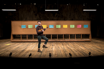 Cramer begins the production with the house lights up, ukulele in hand, in front of a nearly bare stage, save for an expansive bulletin board featuring the names of 10 of the students they tutor. Cramer launches into their first song about student Charlotte. Every time they finish a song about a student, the names are removed from the bulletin board through various means. Cramer's songs are difficult to describe, as they mainly "sing" in a talking (sometimes yelling) recitative for the entire production. While Cramer is not a strong musician, they approach every character and song with playful creativity and ingenuity, using all manner of pianos in addition to their ukulele and the absolute highs and lows of their vocal range. The direction by Morgan Green is deceptively simple, mining the personalities of these students to present consistent portrayals that remain immediately recognizable as teens or children through broad movement and specific gestures. The structure of the 75-minute one-act production brilliantly builds the tension, culminating in a climactic, dramatic, devastating student athlete email leading to Cramer's "BIG REVEAL." To say School Pictures is thought-provoking is a gross understatement. It poses many questions about education, family and love. It was recently featured on an episode of the podcast This American Life entitled, "The Question Trap." Cramer's recitative style of singing, while never melodious and not always pretty, is evocative and emotional. School Pictures fits squarely into the "exploring and expanding the art of musical theatre" part of Theater Latté Da's mission. Cramer reminds us and the students they teach that learning is a process. I highly recommend School Pictures to all teenage and former teenage learners. Theater Latté Da's School Pictures runs through March 2, 2025, at The Ritz Theater, 345 13th Avenue Northeast, Minneapolis MN. For tickets and information, please call 612-339-3003 or visit www.latteda.org . |