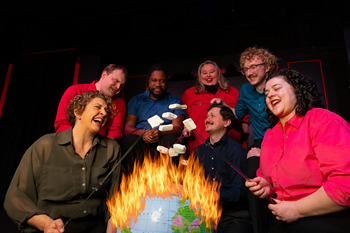 Starring returning performers Lauren Anderson, Denzel Belin, Isabella Dunsieth, Katy McEwen, and Jeffrey Nolan along with music director Jon Pumper and technical director Matthew Vichlach, the production opens with a hummable "Sesame Street" a la Avenue Q style titular number, "The World Is Burning So I Made Smores," led by Dunsieth, while cast members pop out Muppet-style to cheerfully remind the audience, "Just keep going!" An NFL Game Day style news broadcast pops up twice in the first act, in which Katy McEwen breaks down and analyzes Trump's cabinet members in a "who's who of who the f" football announcer style. Following a very funny and punny, on the nose allegory where Dunsieth as Dora the Explorer warns us about the dangers of ICE, Katy McEwen's impassioned Gen X, genius, satirical song "That's Why We Lost" viciously incinerates the progressive complacency of "NPR tote bag liberals" who didn't vote because to them there was no difference between Harris and Trump. Despite a "Dynacompuglobaltech" work lunch meeting sketch that goes a little long, director Caleb McEwen keeps the pace driving, building up to the absolutely hilarious first act finale, an ode to the church of Costco disco number sung with religious fervor by the entire cast, led by Anderson. Remarkably, the second act is as strong as the first, though things definitely get weirder. Dunsieth, Anderson and Katy McEwen open this act as choral-speaking Android-esque Xanax-popping women, followed by Belin and Nolan in a minstrel-style "Salt and Pepper Show" covering topical political news like DEI and tariffs, at one point declaring, "We're just a couple of proud boys!" Anderson and Dunsieth have a less abstract, realistic scene together as a mother comedically admitting to her daughter through the metaphor of Matt Damon in The Martian that adults don't know what they're doing. The entire cast comes together in a goofy penultimate sketch featuring Belin as Marvel's Captain America, Katy McEwen as Captain 'Merica, Dunsieth and Anderson as some Russian villains, and Nolan as the American Eagle. In the finale, Dunsieth admits to feeling guilty about the state of the world, noting that the wildfires in California broke out the day after the title of this production was announced, and exuberantly leads the cast in listing various other current events in the Billy Joel inspired, "We Maybe Started the Fire." Ultimately, this production left me grateful to have a sketch comedy theatre company like the Brave New Workshop in the Twin Cities willing to satirize politics and our "Minnesota Nice" persona. While all the performances are strong, Katy McEwen's specificity and fire give a sharp and hilarious bite to her satire. Belin, Dunsieth, and Anderson are all confident, seasoned cast members. Newer Nolan is not featured much, but shines in his very strong physical comedy bits. I highly recommend The World Is Burning So I Made Smores to anyone feeling bogged down by current events in need of a laugh. The World Is Burning So I Made Smores, presented by Brave New Workshop, runs through May 17, 2025, at the Dudley Riggs Theatre, 824 Hennepin Ave., Minneapolis, MN. For tickets and information, please call 612-339-7007 or visit hennepinarts.org. |