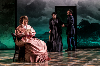 Set in mid-1800s Italy, Passion is the story of a handsome young military officer, Georgio, who is in the thrall of an affair with luscious Clara, with their assignations planned around her husband's absences. The show opens with Clara and Georgio singing rapturously about the "Happiness" they share. Their bliss is disrupted when Georgio receives orders to leave his post in Milan for a remote garrison in the mountains. Clara and Georgio pledge to live for their letters and the moments they can be reunited. At his new post, sensitive and cultured Georgio feels out of place among the roughly mannered officers. When he hears the morbid cries of a woman, his commanding officer explains it is his sickly cousin, Fosca, who has been in his care since her parents' death. She is a morose woman who finds pleasure only in books, so much that she has read every book at the base. Georgio, a reader as well, offers to lend some of his books to her. Through this connection, Fosca and Georgio meet. Georgio immediately becomes Fosca's obsession and reason to not give up on life. The camp doctor encourages Georgio to return Fosca's attentions, thinking it will help her gain strength, but her overwhelming feelings cause her to become overbearing, manipulative, and jealous of Clara. Fosca is not only sickly but ugly, so much that she does not expect any man to ever love her, including Georgio. Yet she relentlessly pursues him, arguing for the purity of her love, a love that cannot hope to be returned and yet persists. Giorgio bitterly rebukes her and requests a five-day leave to tend to "business" in Milan. As the tale unfolds, Fosca is not so easily dismissed, while Clara is trapped by law and society in her circumstances, having both a husband and a child. In time, each of them faces changing realities and the need to make a choice. It was Sondheim's idea to create a musical based on the film Passione D'Amore directed by Ettore Scola, itself based on the novel "Fosca" by Iginio Ugo Tarchetti. "Fosca," Tarchetti's last work, was written in 1869 while he was dying of tuberculosis at the age of 29. The novel is reportedly a fictionalized account of an affair he had while in the service, with an epileptic woman. In Tarchetti's case, it was he, not his afflicted lover, experiencing the certain onset of a tragically young death. Perhaps this contributed a sense of fatalism to the narrative that inhabits Sondheim and Lapine's creation. Passion is certainly Sondheim's most sobering show. Its score beautifully soars with romanticism, be it cloaked in uplift ("Happiness"), despair ("I Wish I Could Forget You"), bitterness ("Is This What You Call Love?"), resignation ("Loving You"), or gratitude ("No One Has Ever Loved Me"), along with a number of musical themes that repeat in various bridging compositions throughout the show. But there is not a single sprightly number to break the intensity of emotion, nor a lighthearted hook that makes it easy to befriend the songs. Even Sweeny Todd punctuates its horror with humorous interludes. Oh, there are a few breaks for the garrison's soldiers to engage in gossip–mostly about Giorgio and Fosca–that might prompt a half-smile, but not a laugh. The narrative is without any time outs for mirth; following the opening declaration of spectacular happiness by the two lovers, it proceeds with one step into emotional quicksand after another. Fortunately, Sondheim's score and Lapine's book are both masterfully wrought and well worth experiencing, even if the tone is somber. Latté Da's production brings out the finest qualities of this work, with exquisite staging by Justin Lucero that presents the story as if a fever dream being resurrected by Georgio as he rises from a stupor and reflects on all that has been lost and gained. The blank-slate, all-white design of the opening (by Paul Whitaker, who also designed the evocative lighting and a bucolic Italian countryside background) re-enforces the notion that this not occurring in an actual location, but in Georgio's memory. His relationships with Clara and Fosca, so radically different, each are authentically portrayed. Erin Capello is marvelous as Fosca, but for one flaw. The flaw is that Capello, while creating a bewitching character with an impassioned voice, is far too pretty to make the case that Giorgio, or any number of other men, would not be attracted to her. What overcomes that flaw, in the course of the show, is the conviction with which Capello states that no one could want her; in time we believe her in spite of the visual evidence to the contrary. That bit of cognitive dissonance aside, Capella nails the role and delivers a crystalline "Loving You," one of Passion's best and best-known songs. Dylan Frederick is compelling as Giorgio, bringing us along on his journey from callow lover in thrall of Clara's physical beauty and the euphoric physical love they share, to an understanding of the love Fosca thrusts upon him, and to find his place between the two. It is a difficult role, and Frederick executes it beautifully. As his journey nears its end, his delivery of "No One Has Ever Loved Me" is emotionally exquisite. Isa Condo-Olvera is an ideal Clara, radiantly beautiful with a talent for expressing her romantic longings, but also, when the lights turn up, practical–instructing Giorgio on how to deal with Fosca, and the reasons she can't leave her husband. She pairs beautifully with Frederick in the opening "Happiness," and conveys a heartfelt blend of regret and affection delivering her "Farewell Letter." She also looks fetching in the elegant dresses and nightgowns by costume designer Amber Brown. Bradley Greenwald effectively portrays the meddlesome doctor, and Eric Morris makes a strong showing as Colonel Ricci, a bit portentous in his role of commander, but paternally protective of his emotionally wounded cousin. The remainder of the cast, all playing various officers at the post, are a strong ensemble, with such 