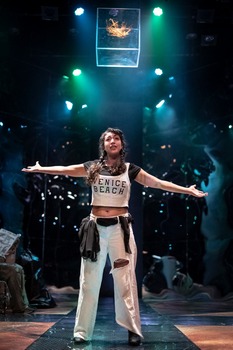 The title character, Marisol Perez, grew up in a Bronx barrio, the daughter of Puerto Rican parents. She worked and studied hard, completed college, and landed a good job editing science books for a Midtown publishing house. Though the neighborhood of her childhood has fallen into decay and is considered "dangerous," she feels at home there. Then, on the day the play begins, she is terrorized on the subway by a man wielding a golf club whose appearance, speech, and behavior peg him as being on drugs, psychologically warped, or both. Marisol is used to dealing with tough characters, but this guy cuts to the quick, and she finds herself on her knees, praying, as the brute is about to strike her. An intervention occurs and Marisol is spared. At first this seems a random act, but later that evening, as Marisol is trying to sleep through the incessant hollering of neighbors and noise from the street, she discovers that she has had the protection of a guardian angel, but that it's coming to an end. The angels are banding together to fight against God, who is becoming incompetent with age but unwilling to step down. If they prevail, they promise a better universe for everyone, but in the meantime, they are leaving the human race to its own devices. Or is all this a dream? At work the next day, Marisol's feisty co-worker, June, is greatly relieved to see her, having heard on the news that a woman named Marisol Perez had been killed in the Bronx–though, it turns out that many women with that name reside in the borough. A man barges in clearly in the wrong place and aggressively makes unreasonable demands of Marisol. She is visibly shaken and June insists that Marisol stay at her apartment in safely gentrified Brooklyn. Only June neglects to tell Marisol about her highly disturbed brother, Lenny (also LaNave), who has developed a fetish around Marisol. June kicks Lenny out of the apartment and invites Marisol to move in, following a gesture of both kindness and intimacy, and Marisol wants to believe she has found a safe haven. But the idea of anyplace being safe is quickie vanishing. Having returned to the Bronx to pack some things, her trek back to Brooklyn becomes a waking nightmare, the city a disorienting blur, social norms imploding. She meets a woman draped in furs, who is deranged after being incarcerated for exceeding her credit card limit and a burn victim in a wheelchair searching for his lost skin. She also has increasingly troubling encounters with Lenny. In 1992, Rivera may have been writing a cautionary tale. Today, it plays like a parable for tomorrow's news cycle. Having said all that, it does leave us at its conclusion with a glimmer of hope, of recreating connections on the dust heap of abject loss. That glimmer is just that, by no means certainty, but suggesting that to endure and rebuild might not be completely insane, and that for those who can survive on just a glimmer, there is hope. Under Sarah Bellamy's vibrant direction, Mariel grabs us by the throat and holds our attention. The relentless disintegration of order raises the possibility that we need to consider the implausible as plausible, the absurd as reasonable, the unthinkable as likely, even if we totally dismiss the intervention of guardian angels and consider only the actions of human beings against their fellow creatures. As Marisol, Kay Mercedes, an actor with local roots who comes to our stages after stays in New York and California, gives an astounding performance, conveying a spectrum of emotions, but never abandoning the core strength that enables Marisol to keep going. She demands our attention, and her forceful presence ensures that we never give up on Marisol. Paul LaNave, who has developed into a reliable actor in a wide range of roles, plays three different predatory men, giving each a distinct nature while creating the overarching sense of male dominance as a baked-in quality that women must always guard against. LaNave's portrayal of Lenny is exceptionally well hewn. We shrink back from his vile nature, yet are drawn to have sympathy as he reveals the agony of his own demons. The indispensable James Craven gives an absolutely flawless performance as the man in search of his skin. He makes a tremendous impact, although the role is relatively small. Sarah Marsh delivers a terrific turn as the women in furs, pivoting from pathetic to adversarial with total credibility. Bri Patnode conveys June's optimism and take-charge brio before revealing the agony of life with her demented brother, kept securely below the surface. Vinecia Coleman expresses the angel's steadfast conviction that the time has come to battle on a higher plane, even if it means leaving those under her protection to fend for themselves. When Marisol asks, "What will happen to me?" and the angel replies, "I don't know," we feel the Angel's regret: this is not a cavalier neglect of duty, but an existential crisis that cannot be avoided. The physical production adds immeasurably to the power of this work. Maruti Evans' set design, Miko Simmons' projections, Marcus Dilliard's lighting design, and Scott Edward's sound design are brilliantly melded together, creating a feeling of generalized mayhem within the context of specific locations. In one scene, images looking up from the ground through a forest of towering skyscrapers suggest the inconsequence of an individual in the world created by mankind. Matthew LeFebvre's costume designs and Jamakah Webb's hair and make-up designs further contribute to the trajectory of the narrative, especially as stylish, well-put-together Marisol slips into a woeful state of dishevelment. Marisol is a bold, appropriate choice for production at this time in the life of our nation. Penumbra and Teatro del Pueblo have made all the right artistic choices, leaving it to audiences to sort out the political, social, and moral implications in Rivera's work. Thankfully, the artistry of this production provides uplift t