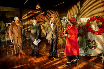 The Resistible Rise of Arturo Ui, by Bertolt Brecht, is Frank's current example of the sway theatre can have over an audience. The play is a cautionary tale about a mobster from the Bronx, Arturo Ui, who lands in prohibition-era Chicago with his lieutenant, Ernesto Roma. Ui sniffs out the culverts where corrupt individuals lurk (especially those needing to maintain a clean image), those only too glad to let him use his muscle to do their dirty work. After he has the goods on them, he spins the tables to gain power for himself. First it's sniveling, glad-handing city alderman Dogsborough, then the shady Chicago Cauliflower Trust. Before long, his ill-gotten power is putting the squeeze on every grocery store in the city. But Ui's looking for a bigger slice of the pie, moving his squeeze play out to neighboring Cicero, and then ... there's a whole nation waiting for him to give them the "protection" he makes sure they need. Ui's demeanor is, on the surface, polite and genteel (except when he goes apeshit), insisting that he wants to work with people, and that he abhors violence. Just one thing: He decides what you have to do to keep the violence he abhors–which mainly comes from the hands of his thugs–from your doorstep, and you can be sure it involves cash payments. When the law intervenes, which it does in a couple of raucous court scenes, Arturo Ui has a way of turning the case around so that someone else is the punk and he smells like a rose, though one with its thorns in plain sight. Brecht wrote The Resistible Rise of Arturo Ui over the course of eight years starting in 1933. That's when the Reichstag fire cemented the Nazi Party and their leader Adolf Hitler's power and prompted Brecht to leave his homeland for Denmark. He eventually emigrated to the United States, finishing the play in 1941 in Los Angeles. Due to "sensitivities" to the subject, he was unable to get it produced until 1958 and the first English production wasn't until 1961. There is no mistaking that Brecht intended his fictional Arturo Ui to represent Hitler (though he also carries shades of Benito Mussolini, Al Capone, and Dutch Schultz), the Chicago Cauliflower Trust represents unfettered capitalism, and the "resistible rise" is the rapid ascent of the Third Reich, which–Brecht's title implies–might have been stopped. Ui's expansion of his realm from Chicago to much smaller Cicero has been likened to Hitler's Germany rolling over Austria. So, a history lesson. But do we learn from the lessons of history? The play works disturbingly well as a parable for the rise of a faction within one of our major political parties, gaining control and operating as if they, and not 238 years of constitutional democracy, make the rules. If we cannot attribute our current state of affairs to crime, but certainly can cite heavy-handed, manipulative, and less than honest dealings. Arturo Ui would be gratified to see that his tactics have held up so well. History lesson or not, The Resistible Rise of Arturo Ui is also a comedy–a very dark comedy, but still, chock full of satiric jabs and wordplay, making it a great entertainment. Under Wendy Knox's adroit direction, the humor is given full expression and the split-second pace of the characters' dialogues keeps us leaning in to catch every morsel, even as you may choke on some of the so-close-to-today's headlines and news personalities. The play uses a number of different devices that both set it in the period it is portraying–like vaudeville style placards carried across the stage to announce each scene and underscore the playfulness of Brecht's conception, whereby making sport out of hellish historical developments somehow makes us more able to absorb the dire warnings embedded in his work. As a work in Brecht's typical epic theatre style, it opens with a prologue led by a narrator (here called "announcer") who introduces the primary characters and sets the tone for what is to follow. Thirteen actors comprise the cast, playing many more characters. Gary Briggle, in a tour-de-force, is the resistible dictator, Arturo Ui, with a marvelous Bronx-Italian accent, a trace of Robert De Niro's gangster portrayals, and, especially when he intends to come off being sincere, a resemblance to a White House occupant who will remain unnamed. He is backed up brilliantly by E.J. Subkoviak as Ernesto Roma, the kingpin's lieutenant who walks a fine line between absolute fealty to the boss and stepping out to risk making some decisions on his own. Subkoviak conveys Roma's penchant to bypass reason and go straight to the action. Briggle and Subkoviak, by the way, are the only two cast members not asked to play multiple roles, and the interplay between them makes their long-time affiliation, with roots in the Bronx, feel authentic. Julia Nickerson is hilarious as Emanuele Giri, displaying a psychopathic demeanor that works under his trade name, Manny the Jester, while Patrick Bailey portrays florist and hit man Giuseppe Givola, who goes under the name "Joey Flowers," with an alarming penchant for knocking people off. Jim Ramlet is perfection as the once upright, now deeply compromised alderman, Dogsborough, and David Coral comes through with a terrific Chicago accent and an attitude that sees virtue in whatever gets the Cauliflower Trust what they need as cauliflower kingpin Clark. David Beukema excels in a number of roles, including the jovial announcer who opens the show in rhyme, Dogsborough's droll butler, and a has-been actor hired by Ui to teach the gangster how to deport himself with class when speaking to a crowd, the better to conceal his venom. Laila Sahir and Leif Jurgensen are convincing as a leading couple from Cicero determined to keep the menace Ui has inflicted on Chicago from infesting their fair city. Sahir is also on her game as a public defender, chair of an investigation into corruption, and a shipyard accountant whose testimony could sink the rackets. Georgia Doolittle h