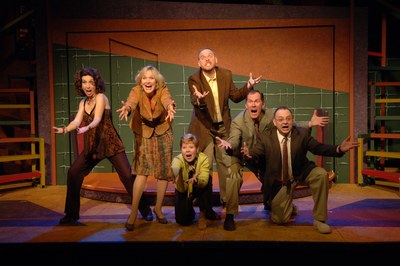 Regional Reviews: Minneapolis/St. Paul Mid-Life! The Crisis Musical and Also see Elizabeth's review of The Rainmaker Chanhassen Dinner Theatres, Mid-Life! The Crisis Musical As one of the inevitable parts of life, aging is a natural topic for a show. After all, we all have to face the "joys" of invasive medical procedures, dealing with an empty nest and finding that the person you've shared the last few decades with isn't quite the same anymore. Well, the middle-class theatergoers that make up much of the Chanhassen Dinner Theatres' audience certainly can bond with these issues. Mid-Life! The Crisis Musical presents a very funny and very entertaining look at the golden years. With a talented six-person cast leading the way for the clever script and songs of Bob and Jim Walton, and Michael Brindisi's rock-solid directing, the evening breezes by in this premiere production. Jay Albright, Shelley Bamberger, Michelle Barber, James Detmar, Tod Petersen, Angela Timberman The Walton brothers spend a lot of time on the physical and mental breakdowns of aging: from menopause (a lengthy, but fun act two opener "Classical Menopause"), to hair loss (a Jerry-Herman like showstopper in act one), to the jolly trips to the doctor for both women and men. On the mental side of things, we have the men trying to retain their athletic youth in "Weekend Warriors," women who have found happiness after divorce in "He Got What He Deserves," and the absolutely universal "What Did I Come In here For?" The best moments come when the Waltons and the cast dig a little deeper to expose some of the real fears, and joys, of growing older - be it a woman re-examining her husband and still finding plenty to love, or several characters struggling to take care of their aging parents. The cast is rock solid, featuring funny performances and quality singing from all six performers - Shelley Bamberger, Tod Petersen, Michelle Barber, James Detmar and the real-life husband and wife team of Jay Albright and Angela Timberman. The show has been juggled extensively since opening and it moves with good pace throughout, except for a dry patch in the second act where they seem to be marking time with lesser material (including a sketch about the husband taking out the trash that really has nothing to do with getting older). Still, the balance of the evening is very much a hoot - one that makes the increasing gray in my hair not so scary. Mid-Life! The Crisis Musical runs through June 25 at the Chanhassen Dinner Theatres. For tickets and more information, call 952-934-1525 or visit www.chanhassentheatres.com.