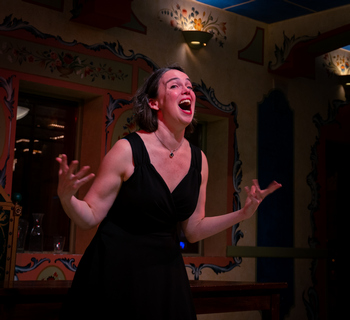 Only then do we realize that she is the host of the meal we have just enjoyed. Her invitation to dine was a decoy to bring us to what she calls "truth and reconciliation" council, listening to her account of how she, the mother of Grendel, murdered a son of heroic Beowulf as a trap meant to destroy Beowulf himself. After all, hadn't Beowulf murdered her son? Not only that, but he had desecrated Grendel's body by ripping off one of her son's arms and affixing it over the mantle like a trophy. She meant to have vengeance and justifies everything she did to achieve it. She tells us, never doubting her logic, "Sometimes it's okay to desecrate a body." Her confessional transitions into a call to arms. She steers us to ask when is it right to, as she has done, rage against power? Our host cites statistics about the relatively small number of billionaires on Earth–a few thousand–whose wealth enables them to control the other nine billion human beings on the planet. Her case for their overthrow is cogent, and her unfamiliar moral code (she is, after all, a sea hag), makes her suggestions seem, in that context, utterly reasonable. As she earlier stated, describing the futility of Grendel's efforts to argue his case against Beowulf using logic, "You can't negotiate with a mosquito." And yet, how do we come to classify human beings as mosquitoes? Feast runs about 75 minutes and Nelson holds our focus for every second. Gogerty–who is both a playwright and a comedian–fluctuates the play's tone between the raging confessions of a deranged sea hag and the bitterly funny commentary of a chatty woman who might be sunbathing in the next deck chair. An example of the latter: in her continued efforts to cast aspersions at Beowulf, she drolly announces "and get this: he's not even from here!" Nelson is mesmerizing, physically as well as mentally engaged every moment, comical one minute and raging with venom the next. When I saw the performance three years ago, I summed up my impression with "All I can say is wow!" That still holds, while the changes since then in our national dynamics make her message all the more urgent. Allison Vincent directs the piece. I couldn't begin to tell where the director's work ends and the actor's picks up, but as Vincent is a fellow veteran of Transatlantic Love Affair, I imagine their collaboration to be exceedingly fluid. Richard Graham designed sounds that add color to the spoken descriptions, such as the clatter of a noisy ale room occupied by warriors celebrating their success. Whittney Streeter designed what are called "special props," which I assume includes the sea hag's oversized glowing heart, which, she determines, causes her to love too much. Black Forest Inn is a long-standing German restaurant in the heart of Minneapolis' "Eat Street" district. It is not a typical theatre venue–it lacks stage lighting or even a stage, but so what? Dinner is served from a choice of entrees ordered in advance, with live music performed during the meal by either Scott Keever or the trio Sycamore Gap on alternating dates. Both are in the vein of Celtic/Nordic/Gaelic folk music. The plays are presented in an event space located just east of the main restaurant, which occupies the corner of 26th Street and Nicollet Avenue. Immediately south of Black Forest Inn, on Nicollet, is Glam Donuts, the shop from which Alex Pretti emerged before becoming embroiled with ICE agents while assisting a fallen protestor to get up from the street. Both sides of the street are marked in remembrance of Pretti. There could be no stronger signal as to the urgency of Grendel's Mother's message to us, teetering as she does between devilish lunacy and clear-eyed wisdom. Her message gains in meaning in counterpoint to the tale of Beowulf, also a killer, but one that has, in the haze of time and English chauvinism, been morally extolled. Feast, a Walking Shadow Theatre Company production, runs through March 29, 2026, at the Black Forest Inn, 1 East 26th Street, Minneapolis MN. A fixed price supper from Black Forest Inn is available before each performance. Tickets for the play only, without supper, are available. On Saturday evenings, March 7, 14, 21, and 28, Beowulf will be performed at 5:00 PM, before supper is served. For tickets and information, please call 612-375-0300 or visit walkingshadow.org. Beowulf - Adapted by: Charlie Bethel; Dramaturg: Sarah Heller; Director: Amy Rummenie. Cast: John Heimbuch Feast -- Playwright: Megan Gogerty; Director: Allison Vincent; Sound Design: Richard Graham; Special Props Design: Whittney Streeter; Dramaturg: Gina Musto; Stage Manager: Brian Hir; Cast: Isabel Nelson Dinner Music: Scott Keever and Sycamore Gap, alternating performances. |