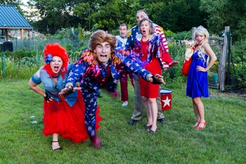 This year's production is Donald Giovanni in Cornlandia, liberally adapted from Mozart's Don Giovanni. Along with his modified name, the title character sports an abundantly wavy golden wig, which should tell you where the show's satire is directed. It is primary season and Cornlandia is any Midwest state where every four years politicians troll for delegates. Along with Donald is his campaign chief Corey Lewandowski; opponents Ted Snuz and Carly Davidson (who Ted suggests become his running mate so they can team up to bring down the Donald); journalist Blitz Wolfer; Gina and Tommy, a pair of wide-eyed locals; and for good measure, Paris Hilton and her yappy dog named Masetto, taken from a peasant character in Mozart's work. The tenuous connection between Donald and Ms. Hilton is an investment in a new hotel, to validate Donald's claim of creating jobs for the populace. In addition, from the opera we have the character Donna Elvira, one of Donald's spurned lovers who begs him to change from a life of greed to doing good for others, and a talking statue who is prophesizes Donald's downfall. The specifics of the story do not make a great deal of sense, even as it touches highlights of the original opera here and there; the essence of a Picnic Operetta is that not making sense is exactly the point. The fun is in busting open the tropes of opera, recognizing the parodies of public figures and societal practices, and the interpolation of pop songs in between Mozart's beautiful arias, making it safe to enjoy serious art without taking it seriously. For example, rather than supertitles to provide the English translations of the Italian lyrics, the meaning is written (in very condensed form) on scrolls, cloths, fans, and other clever places. Which is not to say the production does not have genuine artistic qualities. Director Kym Longhi assembles the cast in various stage images, and makes great use of the large space in the outdoor setting. Jerrod Wendland's script balances corny jokes and topical jabs while maintaining a glancing resemblance to the opera's storyline. Wendland is also the show's music director, leading a four-piece band that manages to cover the range from Mozart to Bon Jovi, to Crosby Stills and Nash, to Vangelis's theme from Chariots of Fire. The principals in the cast all have strong voices. Standouts are Naomi Karstad as Carly Davidson, Lizz Windnagel as Paris Hilton (note, Joni Griffith plays this role at the September 17 and 18 performances), and especially Carolyn Cavadini who, as Donna Elvira, does justice to the truly beautiful arias that are part of the show. Michael Liebhauser, as Donald Giovanni, delivers a terrific musical comedy star performance (I would love to see him in one of the lead roles in Spamalot). The ensemble includes actors of a range of ages, including several children who all fall into place to sing, dance, and speak on cue, in defiance of the overall freewheeling spirit of the occasion. Their costumes, designed by Sarah Bahr, have a carnival-like quality that suits the jocular mood just fine. Nancy Nair provides them with some light-hearted choreography that brings pep to the event, while staying safely in the realm of stage dance for non-dancers. As for the food, there are five different courses served during the show, all prepared on site. My favorite is the caprese skewer, but all are tasty, offered in small bite-sized portions on trays passed around the audience sitting on picnic blankets or lawn chairs. Most clever is the final treat, a Donald's mini- puff pastry, noted for being full of hot air. By the way, note that all the food offerings are vegetarian. The Picnic Operetta does not pretend to be serious opera, or even operetta, but a delightful send-up of the form, that can be enjoyed by opera buffs (though a sense of humor about the form probably is essential), and those who don't care for opera, or perhaps have never seen an opera at all. Don Giovanni in Cornlandia is ninety minutes spent in natural surroundings, laughing and having our wits sharpened a bit, enjoying some genuinely lovely Mozart compositions along with some soul tunes, some rock, and some countryand being pampered by the tastes and scents of seasonal foods. The audience includes young and old, and there seems to be something in the Picnic Operetta for everyone to enjoy. Donald Giovanni in Cornlandia continues through September 18, 2016, at various locations. All performance sites are outdoors. Donation of $10.00 - $20.00 is suggested. For performance dates, locations, ticket information and reservations go to mixedprecipitation.org. For ticket sales only, call 1-800-838-3006 (Brown Paper Tickets). Writer and Music Director: Jerrod Wendland Director: Kym Longhi; Production Stage Manager and Artistic Associate: Jacob Miller; Assistant Stage Manager: Akiko Oslund; Choreographer: Nancy Noir: Fight Choreographer: Dave Schneider; Set Designer: Elliot Hayes; Costume Designer: Sarah Bahr; Scenic Artist: Kathy Stewart; Music and Lyrics from Don Giovanni" by Wolfgang Amadeus Mozart and Lorenzo De Ponte; Additional music by Frank Sullivan III and Jim Peterik, Ian Stanley, Roland Orzabal and Chris Hughes, Angus and Malcom Young, Crosby, Stills and Nash, Bruce Hornsby, Morten Harket, Magne Furuholmen, and Pal Waaktaar-Savoy, Vangelis, Falco, Rob and Ferdi Bolland, Jon Bon Jovi, Richie Sambora and Desmond Child. Cast: Jim Ahrens (Ted Snuz), Isaac Bont (Masetto the Dog, the Statue), Carolyn Cavadini (Donna Elvira), Naomi Karstad (Carly Davidson), Michael Liebhauser (Donald Giovanni), Nick Miller (Corey Lewandowski), Ricky Morisseau (Tommy), Will Schmidt (Blitz Wolfer), Laura Torgeson (Gina), Lizz Windnagel (Paris Hilton). Ensemble: Asher Edes, Ayden Her, Macey Hines, Nicole Kissambou, Akiko Ostlund, Jesse Pollock-Foote, Manny Vazquez and Colin Woolson. |